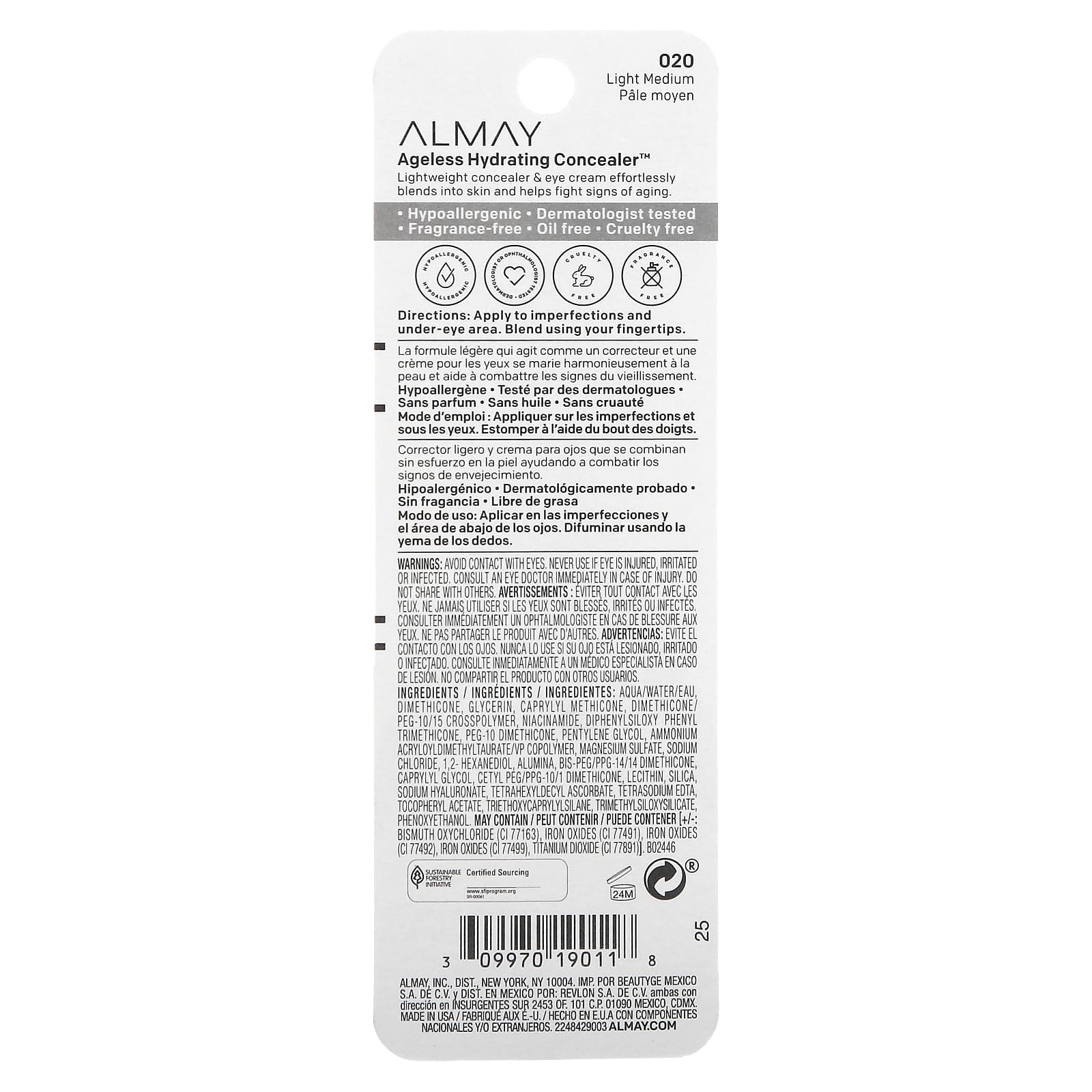 Almay, Ageless Hydrating Concealer, увлажняющий консилер, 020 светлый и бежевый, 11 мл (0,37 жидк. унции)