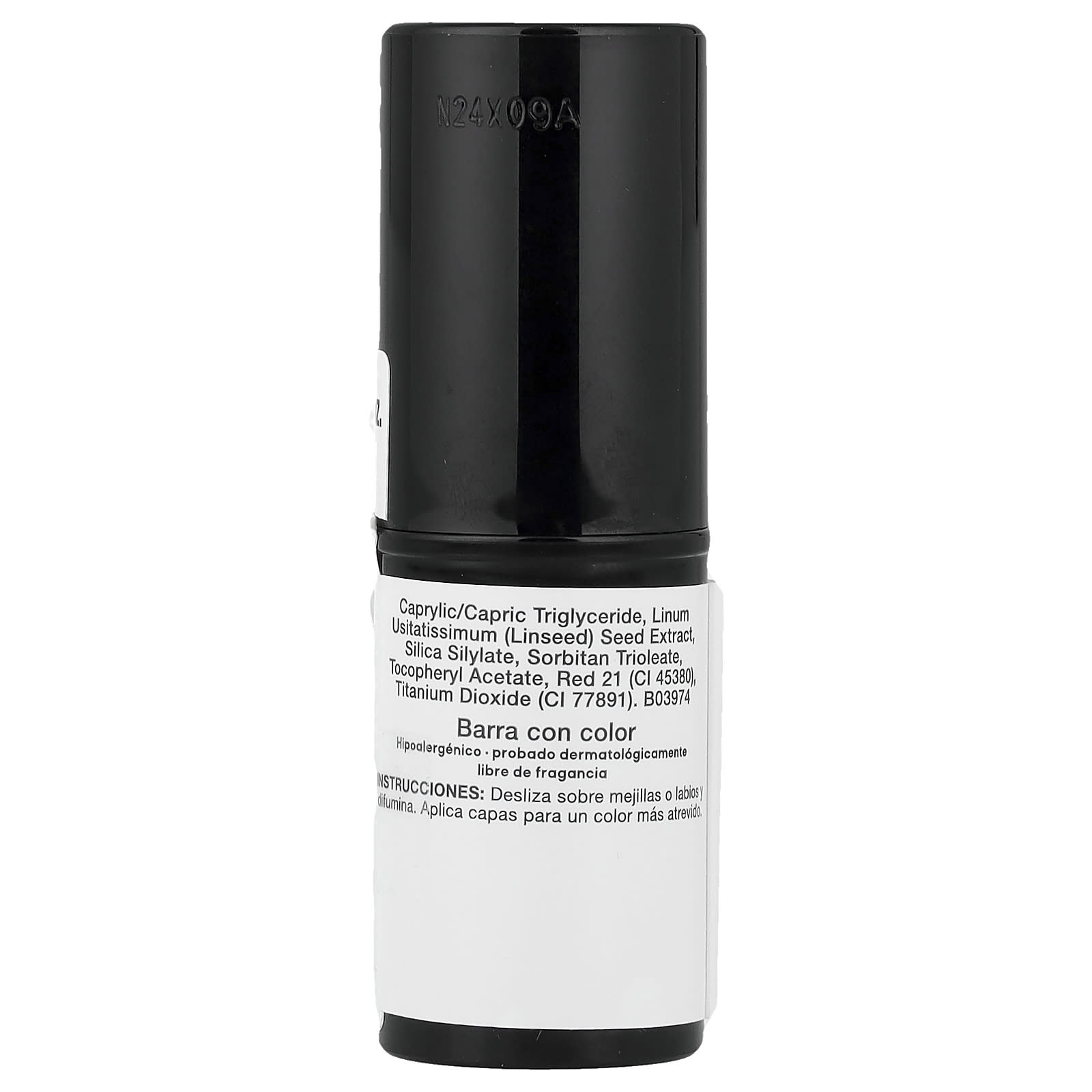 Диизостеарил малат, полибутен, бис-диглицерил полиациладипат-2, синтетический фторфлогопит, октилдодецил неопентаноат, изононил изононаноат, гидрогенизированный полиизобутен, полиэтилен, винил диметикон/метикон силсесквиоксан кроссполимер, диизопропил димер дилинолеат, озокерит, белая мука (Cera alba)/пчелиный воск, масло из семян жожоба (Simmondsia chinensis), диоксид кремния, экстракт семян сельдерея (Apium graveolens), каприловый/каприновый триглицерид, экстракт семян льна (Linum usitatissimum), силилат диоксида кремния, сорбитан триолеат, токоферилацетат, краситель красный 21 (CI 45380), диоксид титана (CI 77891).