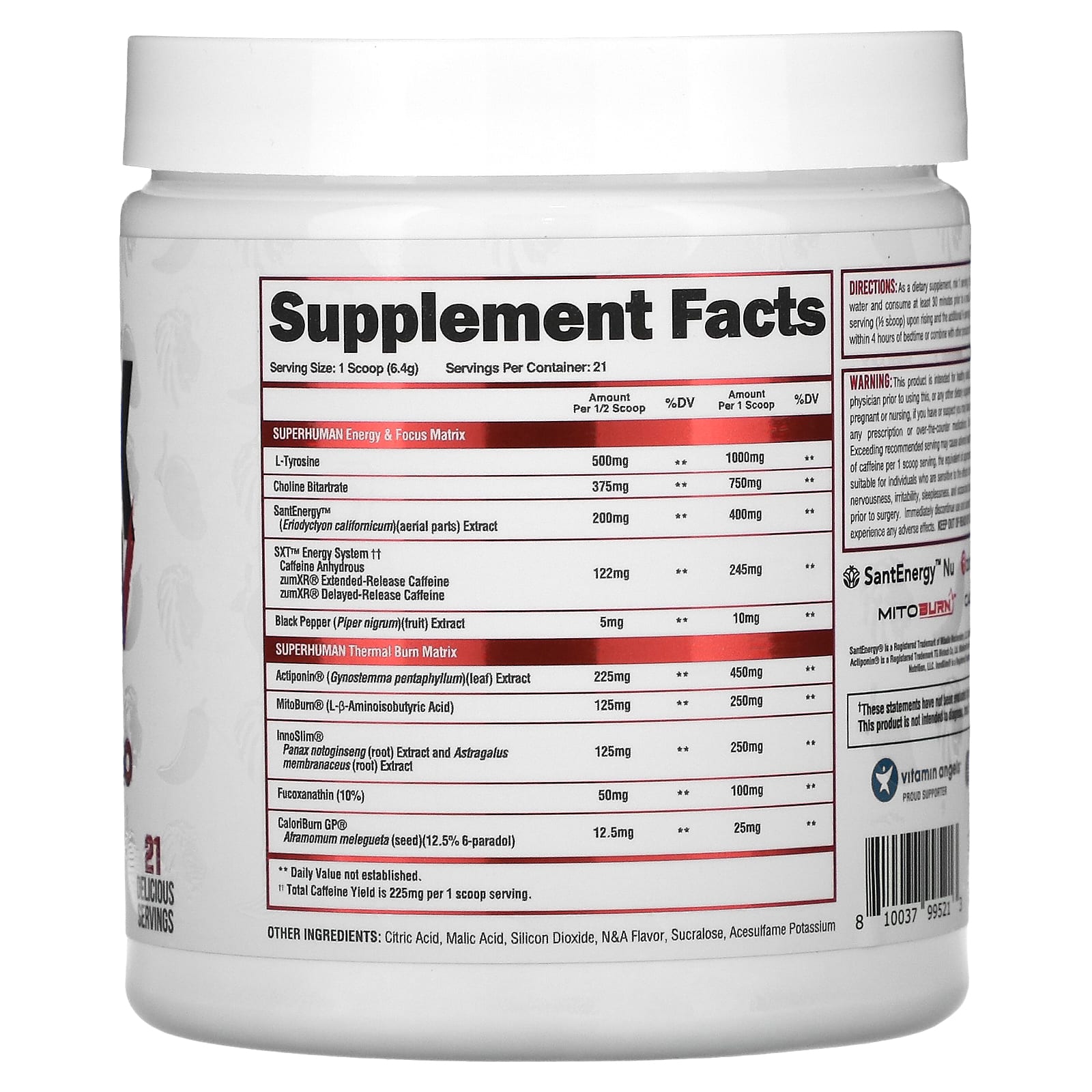 Этот продукт предназначен только для здоровых взрослых людей в возрасте 18 лет и старше. Проконсультируйтесь с врачом перед применением этой или любой другой пищевой добавки. Не принимайте этот продукт во время беременности или кормления грудью, если у вас есть или вы подозреваете, что у вас может быть заболевание, или принимаете какие-либо рецептурные или безрецептурные препараты. Не следует превышать рекомендуемую дозировку. Превышение рекомендуемой дозировки может вызвать серьезные негативные последствия для здоровья. Этот продукт содержит 225 мг кофеина в 1 мерной ложке, что эквивалентно примерно 2 чашкам кофе и может не подходить для людей, чувствительных к воздействию кофеина. Слишком большое количество кофеина может вызвать нервозность, раздражительность, бессонницу и иногда учащенное сердцебиение. Прекратите использование за 2 недели до хирургической операции. Немедленно прекратите использование и проконсультируйтесь с врачом, если у вас возникнут какие-либо побочные эффекты. Хранить в недоступном для детей месте.