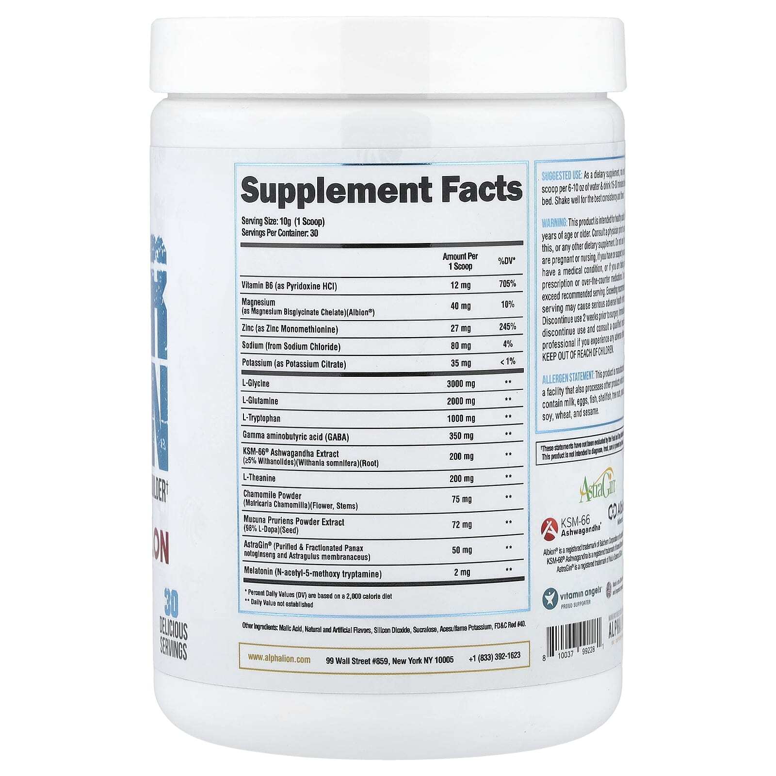 В качестве пищевой добавки смешайте одну (1) мерную ложку с 180–300 мл (6–10 унциями) воды и выпейте за 15–30 минут до сна. Хорошо встряхните для лучшей консистенции и вкуса.