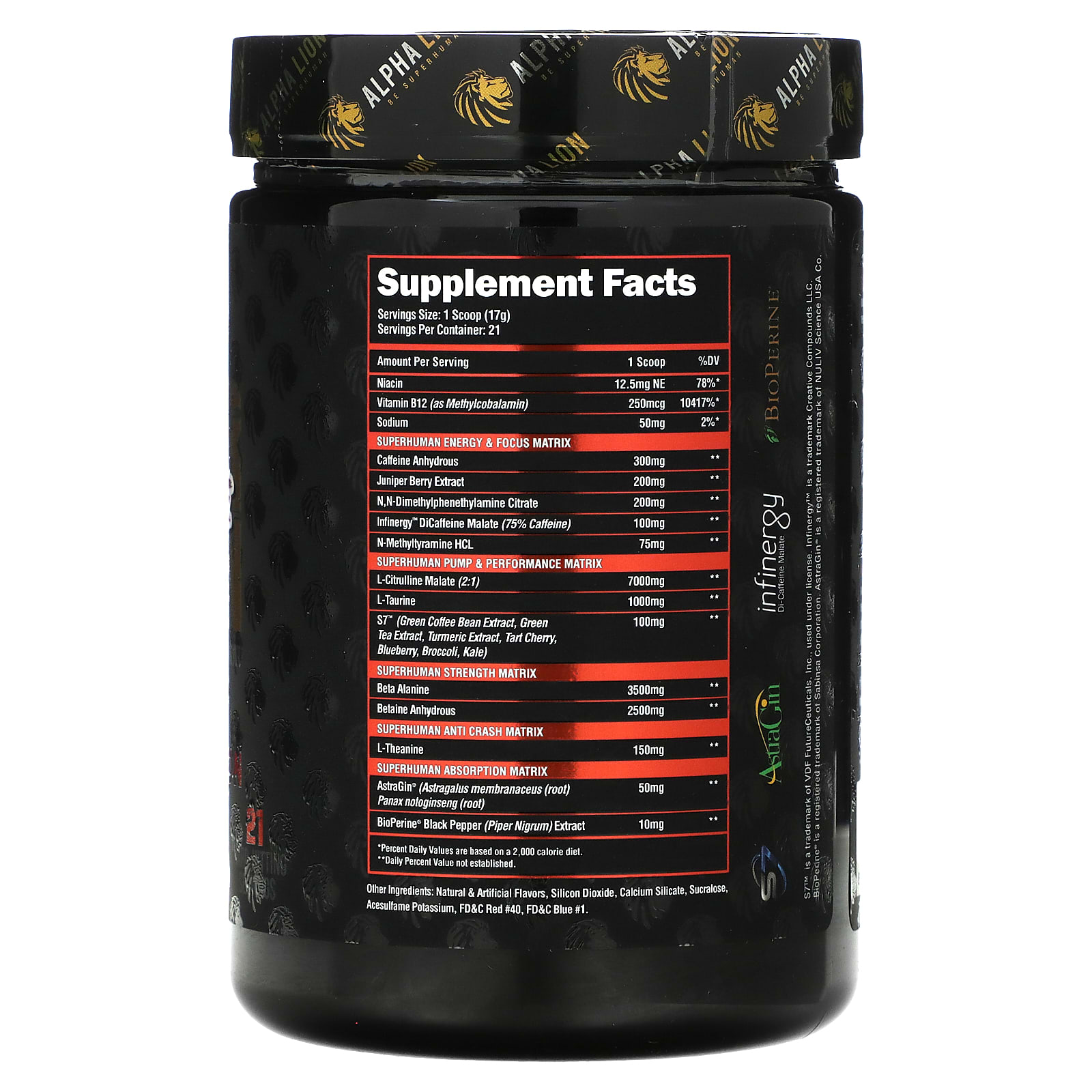 SuperHuman Supreme - сильный AF! Чтобы оценить переносимость, смешайте ½ мерной ложки с 180–240 мл (6–8 унциями) воды за 15 минут до тренировки. Смешайте 1 полную мерную ложку, когда вам нужно зарядить энергией и продуктивностью самые изнурительные тренировки.