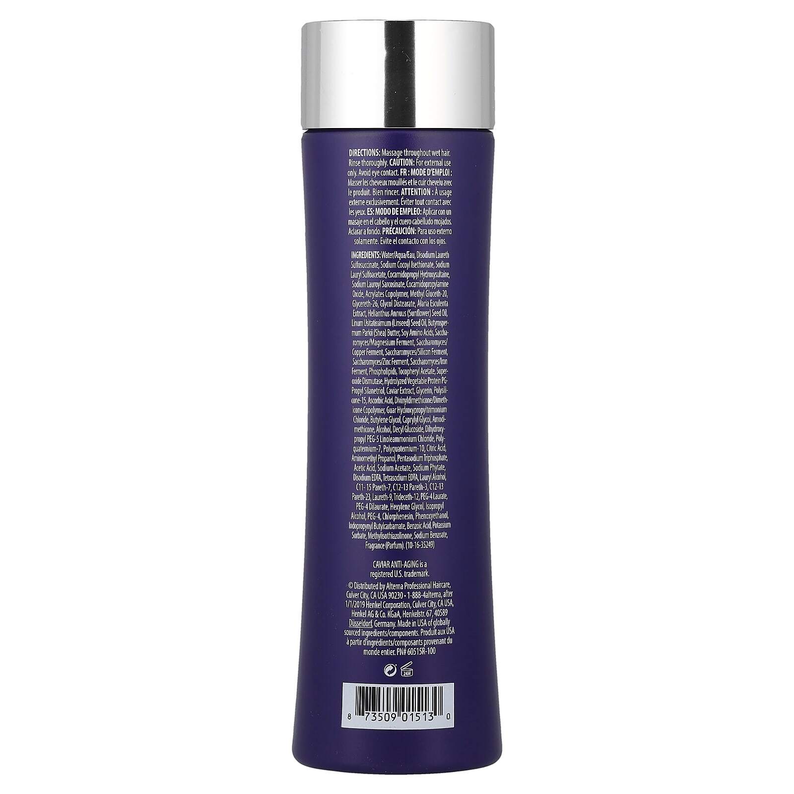 Вода (eau), динатрия лаурет сульфосукцинат, кокоил изетионат натрия, лаурилсульфоацетат натрия, кокамидопропил гидроксисултаин, лауроилсаркозинат натрия, кокамидопропиламиноксид, сополимер акрилатов, метил глюцет-20, глицерет-26, гликоль дистеарат, экстракт аларии съедобной (Alaria esculenta), подсолнечное масло (Helianthus annuus), масло из семян льна (Linum usitatissimum), масло ши (Butyrospermum parkii), соевые аминокислоты, фермент дрожжевых грибков сахаромицетов и магния, сахаромицеты/медный фермент, фермент дрожжевых грибков сахаромицетов и силикона, фермент дрожжевых грибков сахаромицетов и цинка, фермент дрожжевых грибков сахаромицетов и железа, фосфолипидов, токоферилацетат, СОД, гидролизованный растительный белок ПГ-пропил силантриол, экстракт черной икры, глицерин, полисиликон-15, аскорбиновая кислота, дивинилдиметикон/диметикон сополимер, гуар гидроксипропилтримония хлорид, бутиленгликоль, каприлилгликоль, амодиметикон, спирт, децил глюкозид, дигидроксипропил ПЭГ-5 линолеаммоний хлорид, поликватерниум-7, поликватерниум-10, лимонная кислота, аминометил пропанол, пентанатрия трифосфат, уксусная кислота, ацетат натрия, фитат натрия, двунатриевая ЭДТК, тетранатрия ЭДТК, лауриловый спирт, C11-15 парет-7, C12-13 парет-3, C12-13 парет-23, лаурет-9, тридецет-12, ПЭГ-4 лаурат, ПЭГ-4 дилаурат, гексиленгликоль, изопропиловый спирт, ПЭГ-4, хлорфенезин, феноксиэтанол, йодопропинил бутилкарбамат, бензойная кислота, сорбат калия, метилизотиазолинон, бензоат натрия, отдушка (парфюмерная композиция).