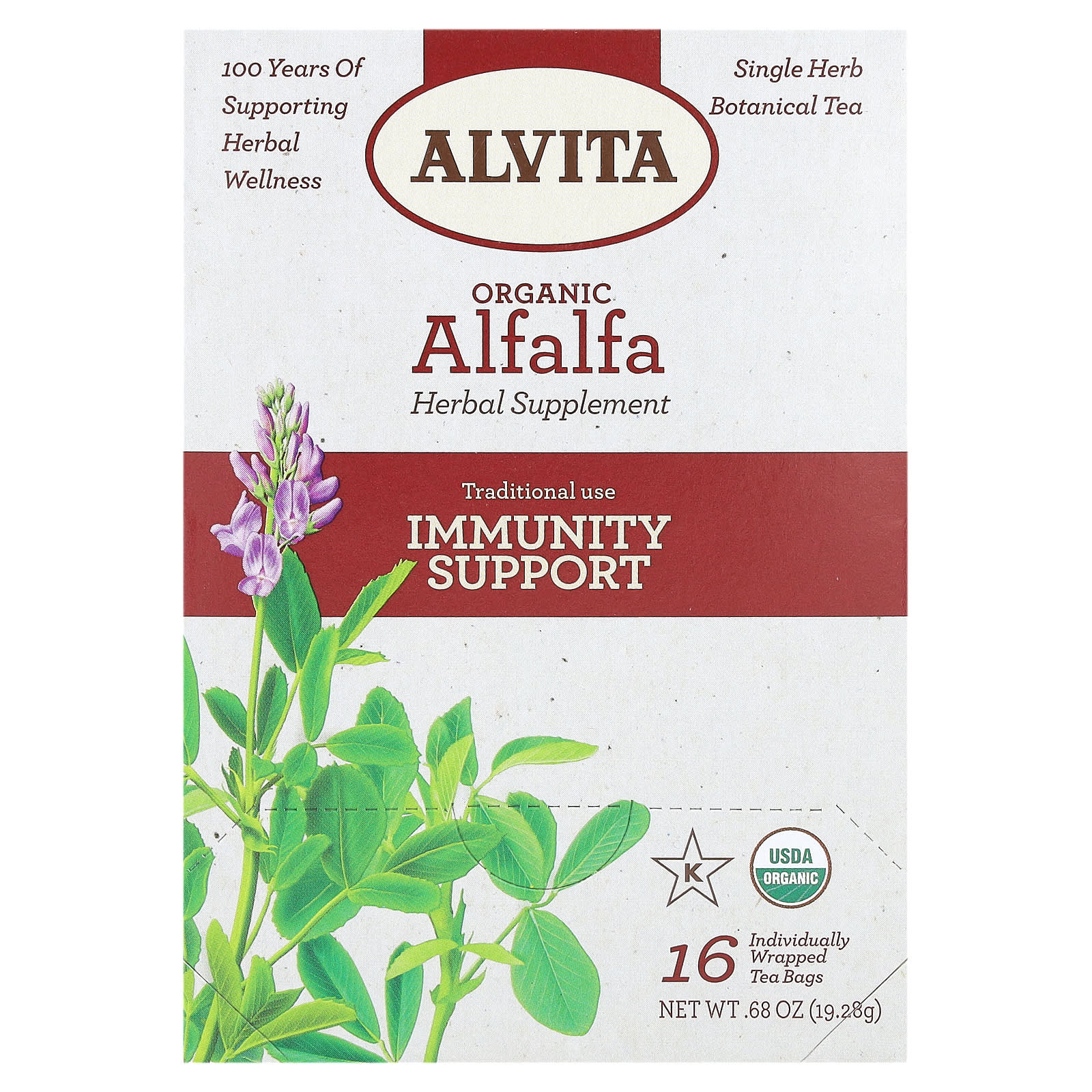 Культивируемая из-за своей питательной ценности люцерна на протяжении тысячелетий, люцерна (Medicago sativa), также известная как «король трав» и «отец всех продуктов», содержит несколько питательных веществ природного происхождения, которые обуславливают ее широкое и традиционное использование травниками для поддерживать общее самочувствие. Люцерна также была основным чаем, произведенным компанией Alvita Tea в 1922 году.