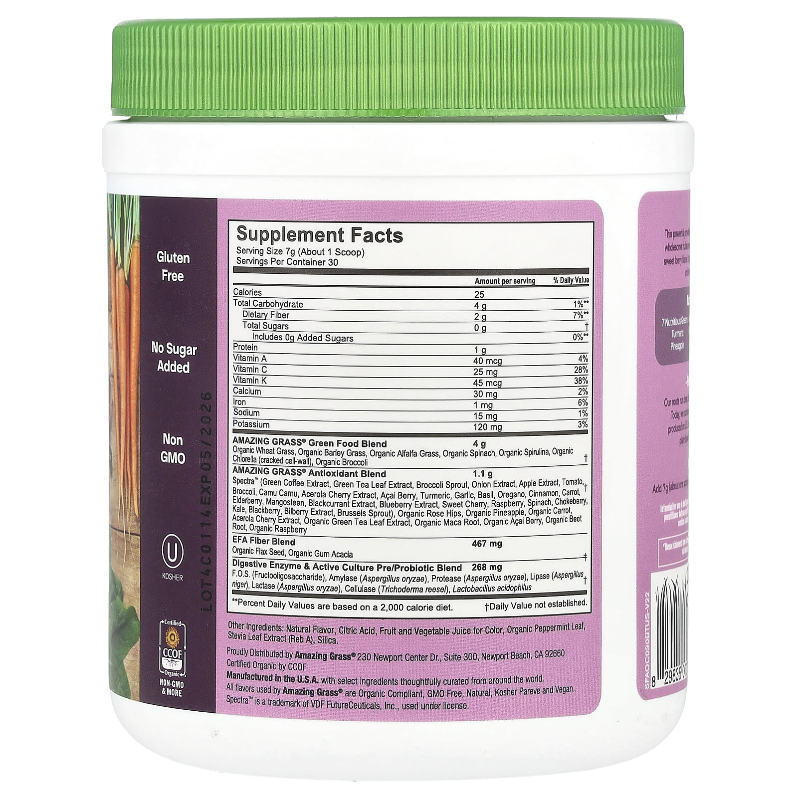 Эта эффективная смесь в виде порошка содержит питательную зелень, полезные фрукты и овощи с антиоксидантом витамином С. Обладая выраженным вкусом сладких ягод, она поддерживает общее состояние здоровья и помогает вам чувствовать себя потрясающе каждый день.