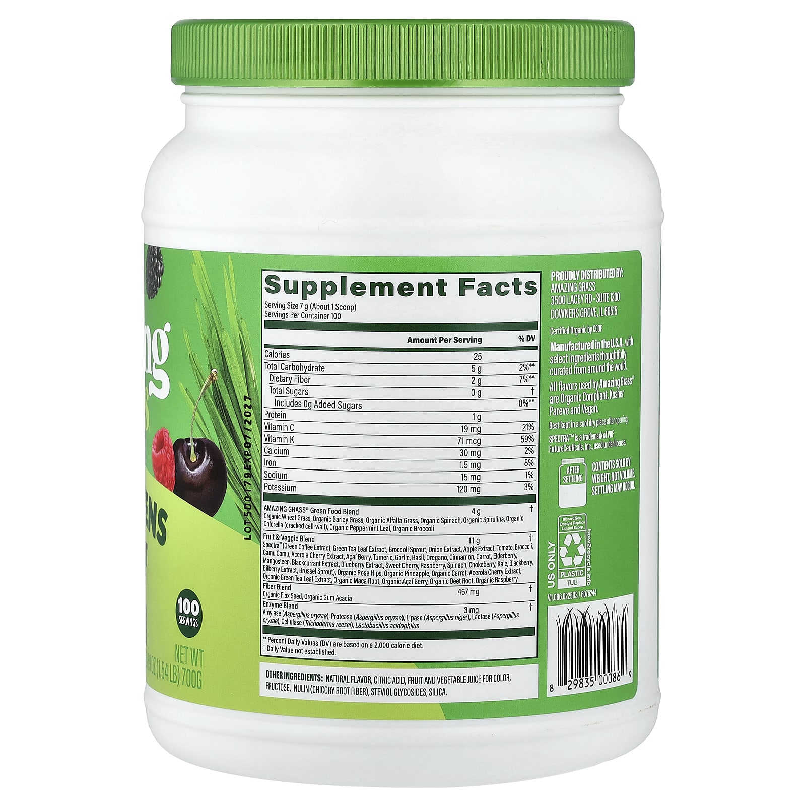 Amazing Grass, суперзелень, антиоксидант, со вкусом сладких ягод, 700 г (1,54 фунта)