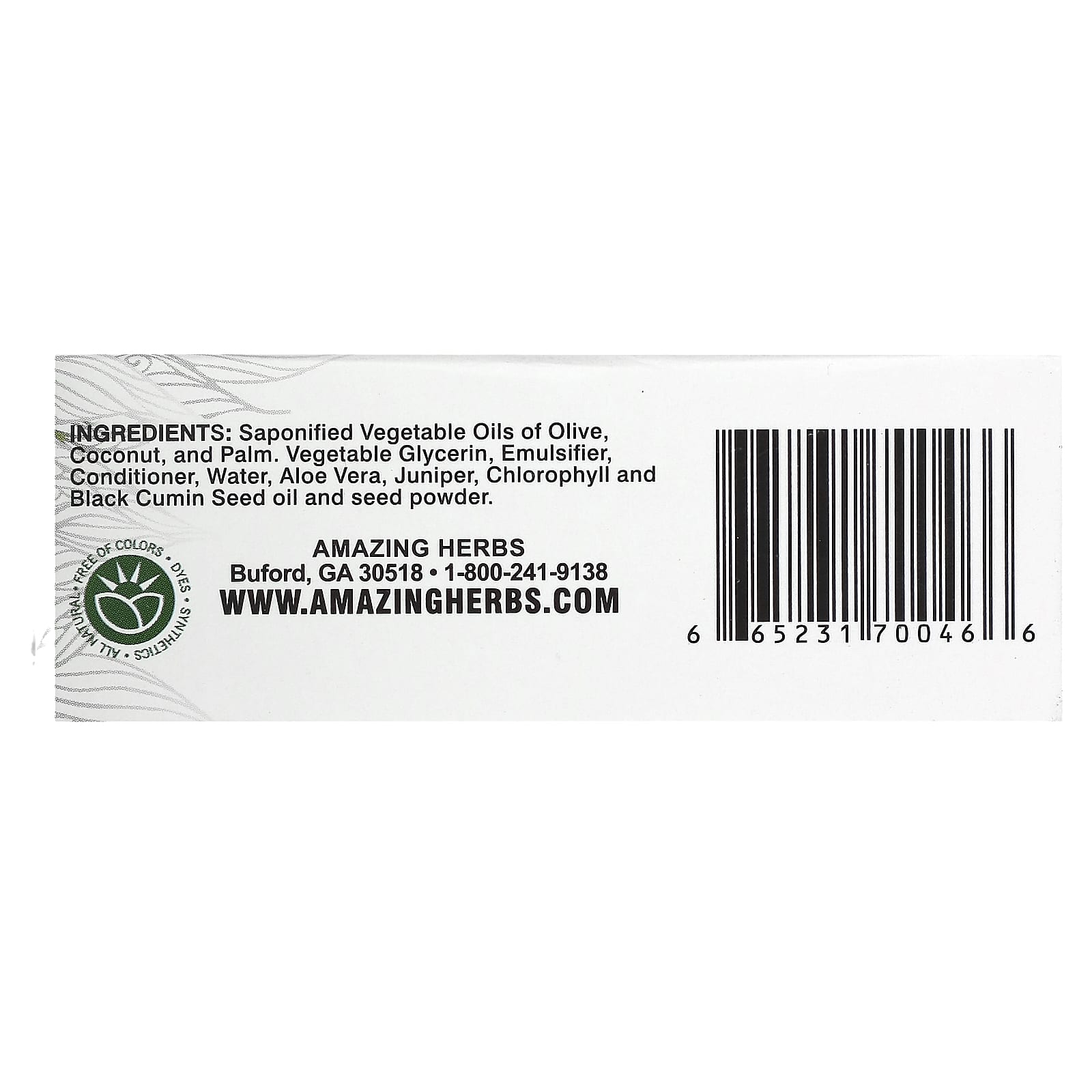 Мыло с черным алоэ от Amazing Herbs успокаивает, увлажняет и защищает кожу. Он отлично подходит для раздраженной кожи. Он на 100% состоит из масла семян черного тмина холодного отжима и алоэ вера. Он содержит питательные незаменимые жирные кислоты (незаменимые жирные кислоты) и антиоксиданты, а также содержит молотый черный тмин, растительный глицерин, оливковое и кокосовое масла, которые помогают смягчить кожу и восстановить ее естественный баланс.