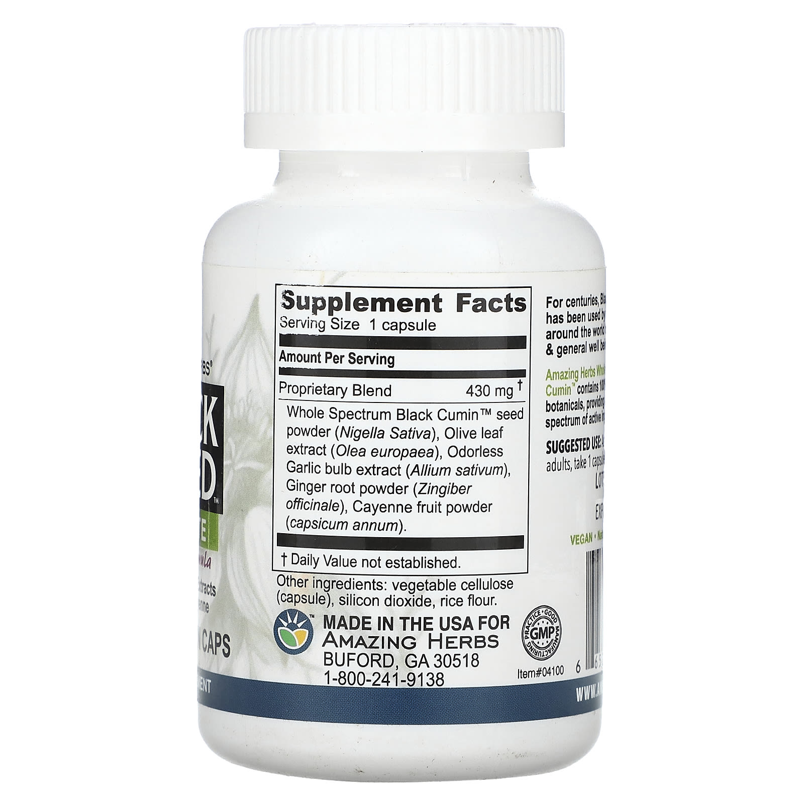 Черный тмин Amazing Herbs Whole Spectrum ™ содержит 100% растительных компонентов, обеспечивая полный спектр активных ингредиентов.