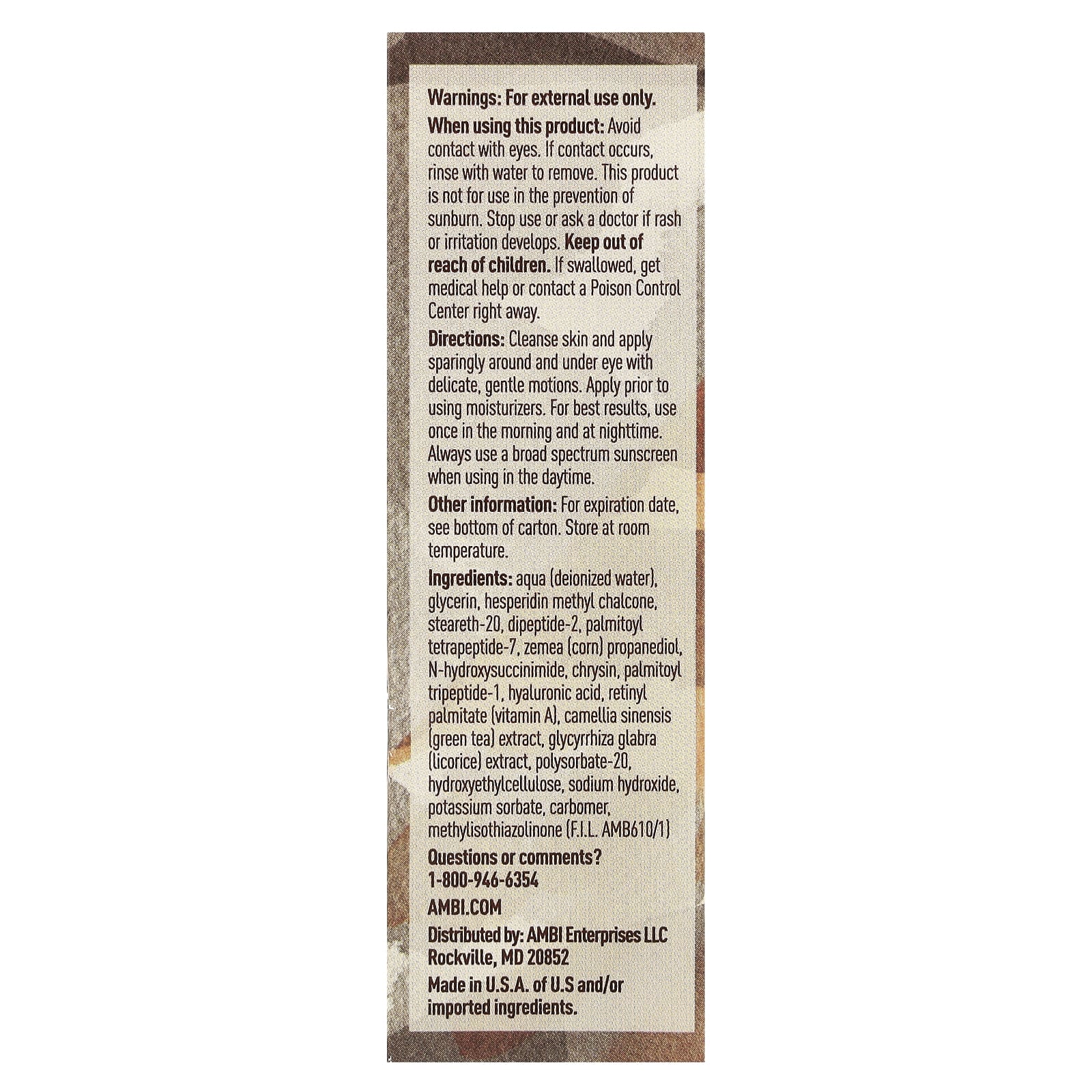 СЫВОРОТКА ДЛЯ ГЛАЗ AMBI EVEN & CLEAR восстанавливает и сохраняет молодой вид благодаря запатентованной формуле против старения, в состав которой входят гиалуроновая кислота, пептиды, зеленый чай и другие натуральные ингредиенты. При правильном применении этот питательный комплекс уменьшает мелкие морщинки и отечность, восстанавливая эластичность кожи и выравнивая ее тон.