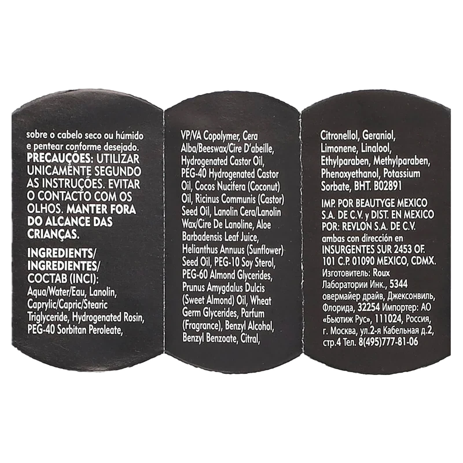 Вода (Aqua/eau), ланолин, каприловый / каприновый / стеариновый триглицерид, гидрогенизированная канифоль, ПЭГ-40 сорбитан перолеат, ВП/ВА сополимер, пчелиный воск / белый воск (Cera alba), гидрогенизированное касторовое масло, ПЭГ-40 гидрогенизированное касторовое масло, кокосовое масло (Cocos nucifera), касторовое масло (Ricinus communis), ланолин цера / ланолиновый воск / цире де ланолин, сок из листьев алоэ вера (Aloe barbadensis), подсолнечное масло (Helianthus annuus), ПЭГ-10 соевый стерол, ПЭГ-60 глицериды миндаля, масло сладкого миндаля (Prunus amygdalus dulcis), глицериды зародышей пшеницы, парфюмерная композиция (отдушка), бензиловый спирт, бензилбензоат, цитраль, цитронеллол, гераниола, лимонена, линалоол, этилпарабена, метилпарабен, феноксиэтанол, сорбат калия, бутилгидрокситолуол.