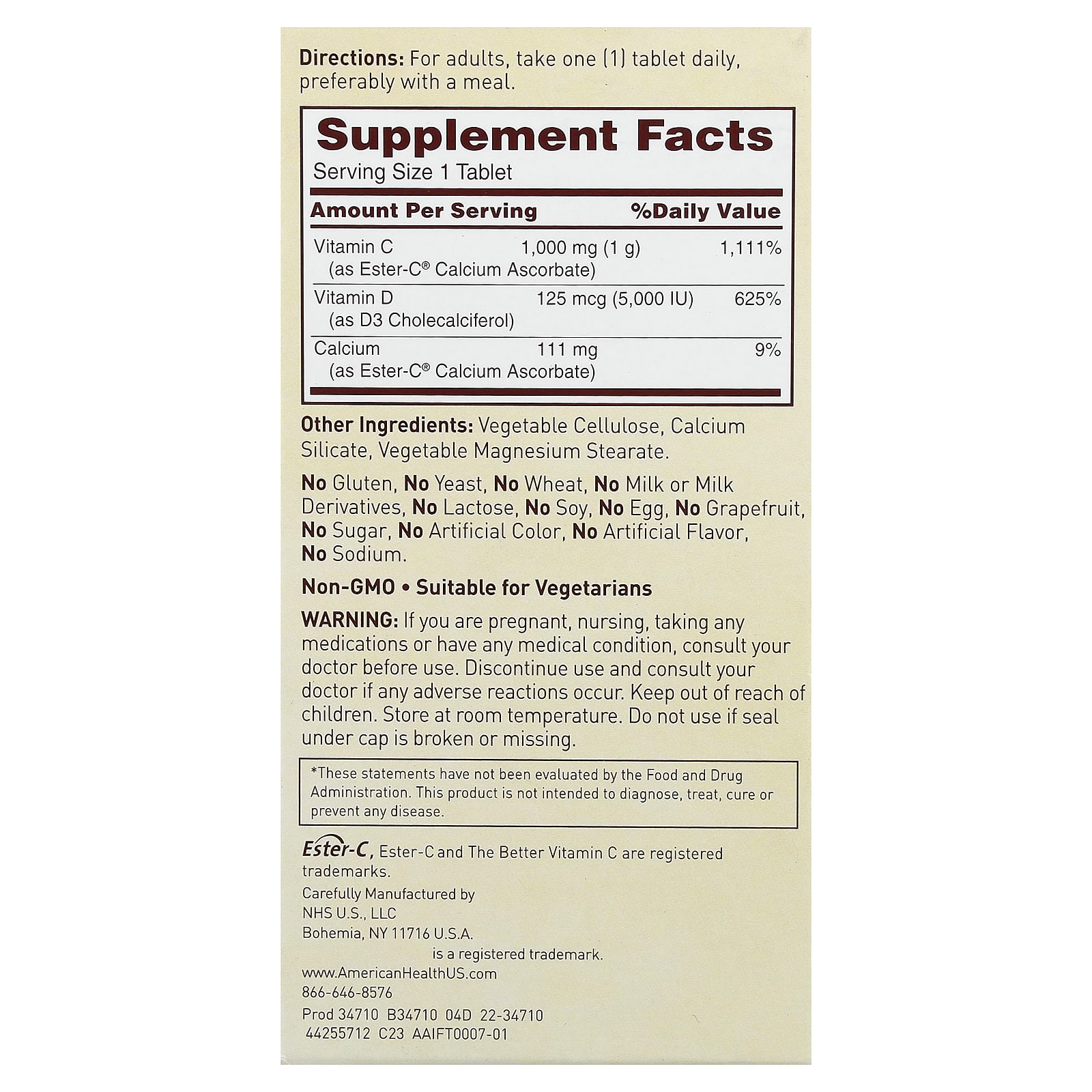 Сегодня витамин D считается более важным, чем когда-либо. Витамин D3, более эффективная и биодоступная форма по сравнению с витамином D2, играет активную роль в усвоении кальция и фосфора, необходимых для здоровья костей. Беспокоясь о вреде длительного пребывания на солнце, многие из нас не получают необходимый нам витамин D от естественного солнечного света. Комплекс некислого Ester-C® для здоровья костей и иммунной системы с D3 сочетает в себе 24-часовую иммунную поддержку благодаря pH-нейтральному витамину C Ester-C® и высокоэффективный (5000 МЕ) витамин D3 в формуле для приема один раз в день. Ester-C® с D3 обеспечивает более чем в 6 раз рекомендуемый дневной уровень витамина D в форме, которая естественным образом вырабатывается организмом.