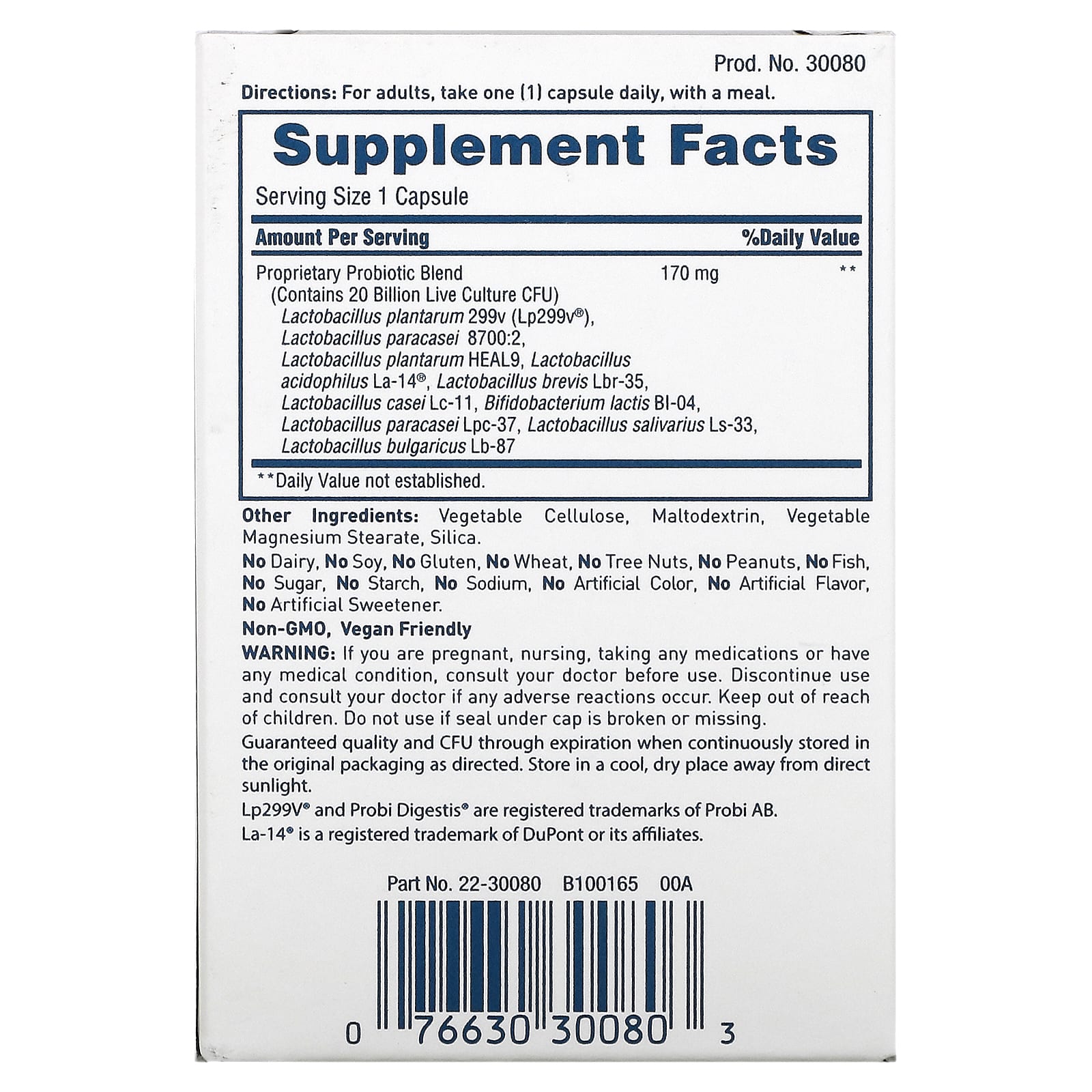 | (Содержит 20 млрд КОЕ живых культур) Лактобактерии плантарум 299v (LP299v®) Лактобактерии параказеи 8700: 2, Лактобактерии плантарум (Lactobacillus plantarum) HEAL9, Ацидофильные лактобактерии (Lactobacillus acidophilus) La-14® Лактобактерии бревис (Lactobacillus brevis) Lbr-35, Лактобактерии казеи Lc-11, Бифидобактерии лактис БИ-04, Лактобактерии параказеи Lpc-37, Лактобактерии саливариус Ls-33, Болгарская палочка (Lactobacillus bulgaricus) Lb-87 | ||