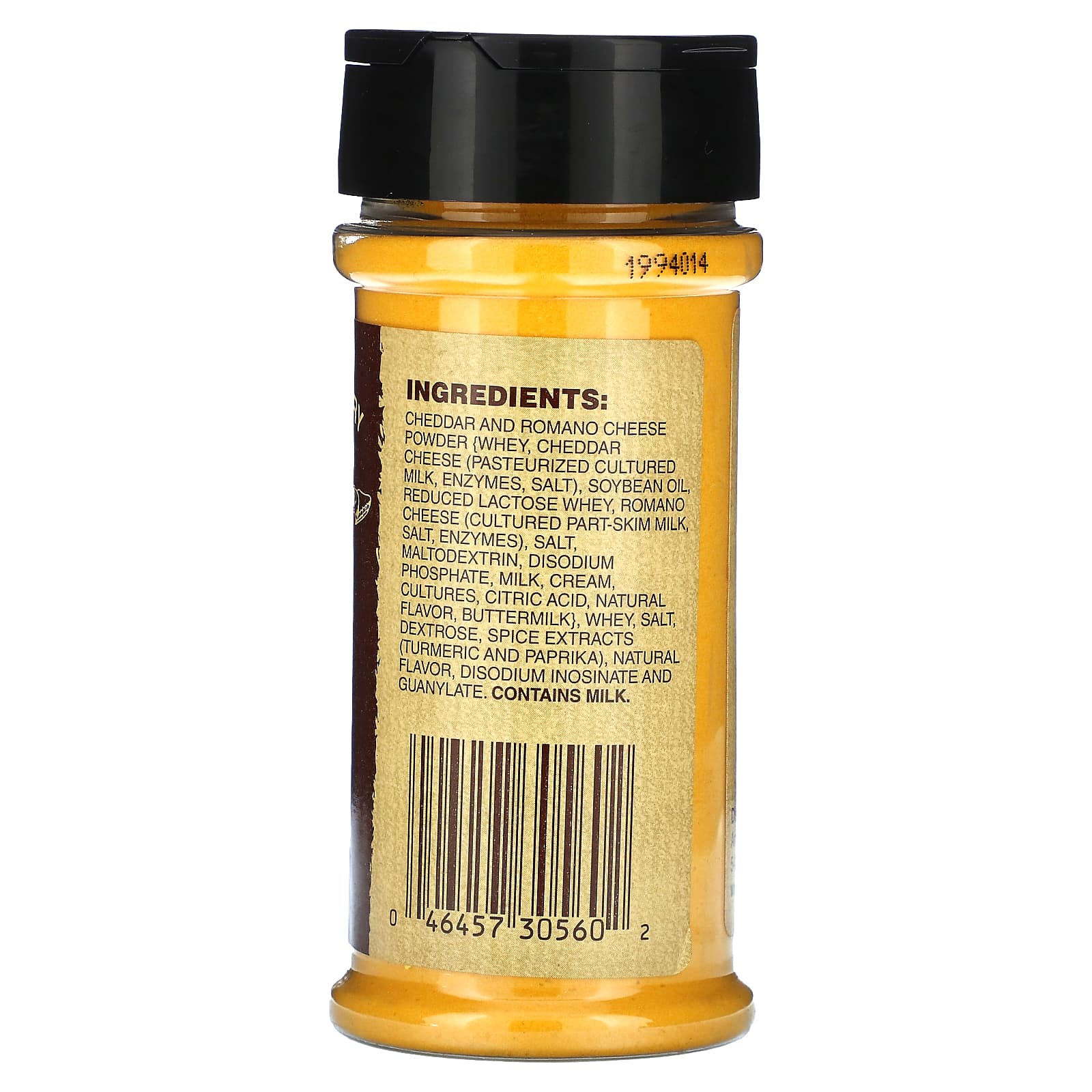 Порошок из сыра чеддер и романо (сыворотка, сыр чеддер (пастеризованное кисломолочное, ферментов, соль), соевое масло, сыворотка с пониженным содержанием лактозы, сыр романо (культивированное частично обезжиренное молоко, соль, ферменты), соль, мальтодекстрин, динатрия фосфат, молока, сливки, закваска, лимонная кислота, натурального ароматизатора, пахта}, сыворотка, соль, декстроза, экстракты специй (куркума и перец), натурального ароматизатора, динатрий инозинат и гуанилат.