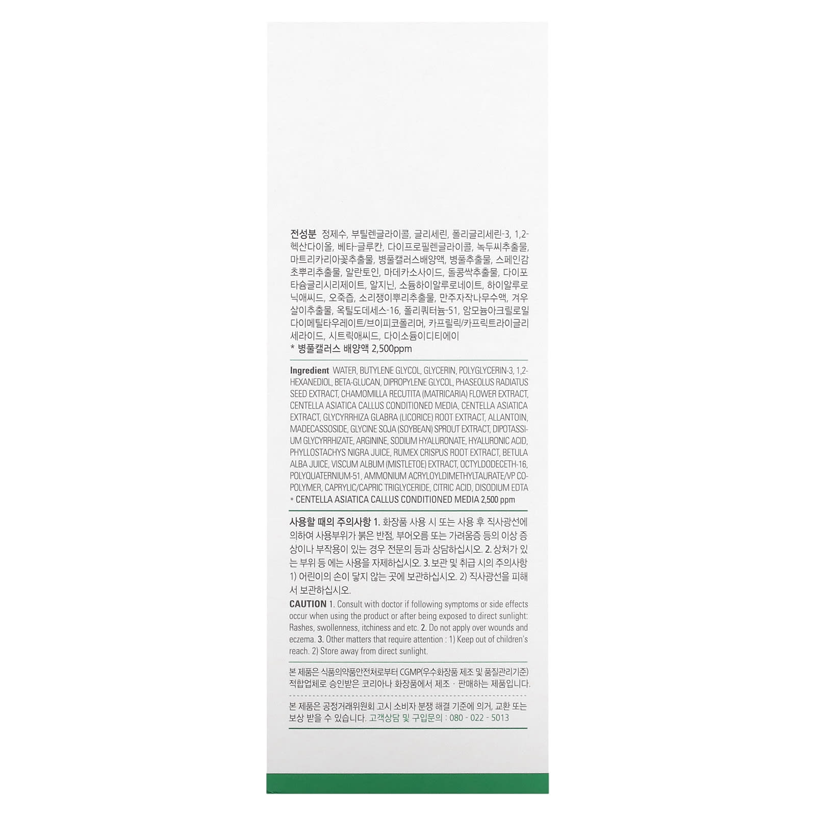 Вода, бутиленгликоль, глицерин, полиглицерин-3,1,2-гександиол, бета-глюкан, дипропиленгликоль, экстракт семян золотистой фасоли (Phaseolus radiatus), экстракт цветков ромашки лекарственной (Chamomilla recutita), Центелла азиатская (Centella asiatica) с каллусной средой, экстракт готу колы (Centella asiatica), экстракт корня солодки (Glycyrrhiza glabra), аллантоин, мадекассосид, экстракт ростков сои (Glycine soja), дикалия глицирризат, аргинин, гиалуронат натрия, гиалуроновая кислота, сок Phyllostachys nigra, экстракт корня румекса (rumex crispus), березовый сок (Betula alba), экстракт омелы белой, октилдодецет-16, поликватерниум-51, акрилоилдиметилтаурат аммония / ВП сополимер, каприловый/каприновый триглицерид, лимонная кислота, двунатриевая ЭДТК.