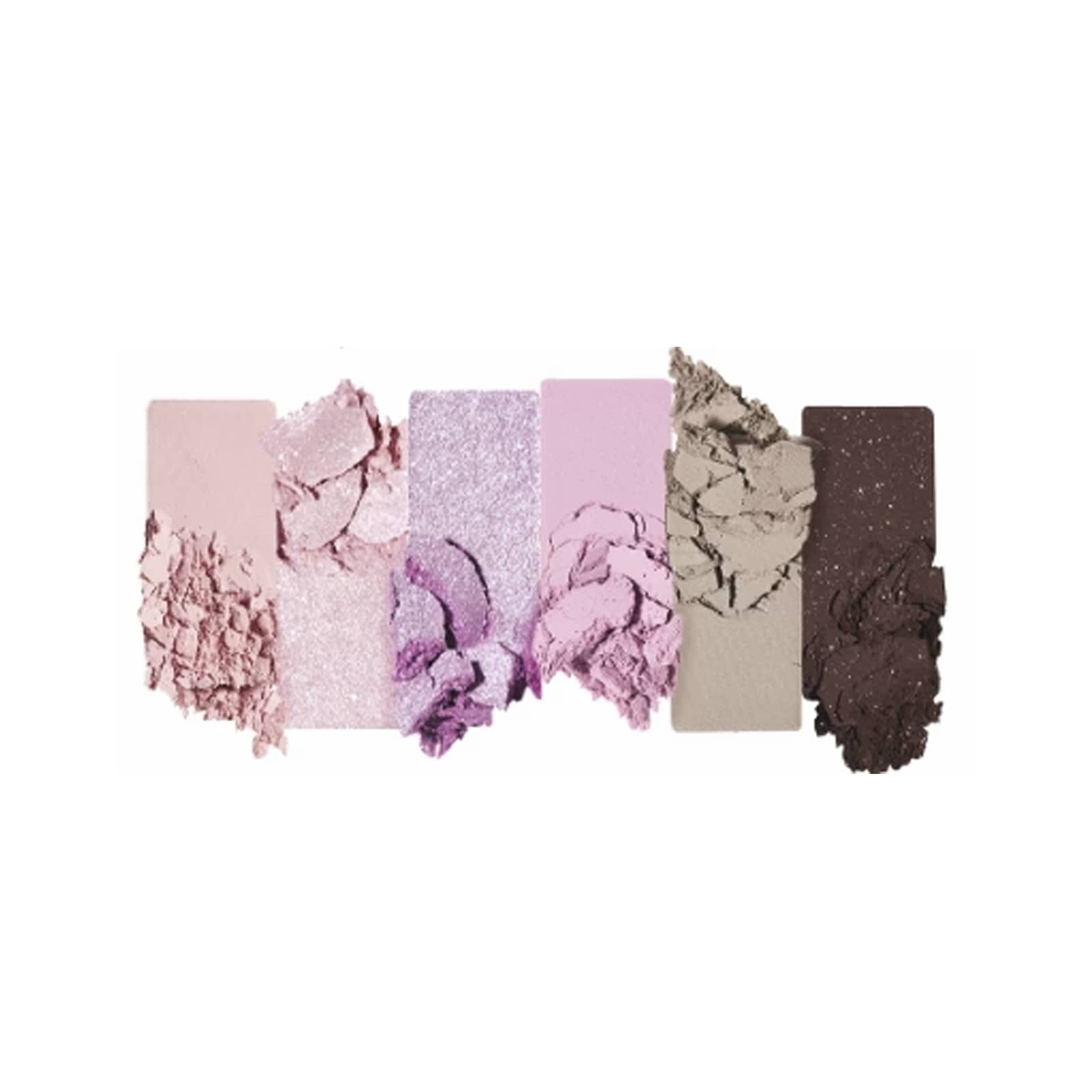 Веганская палитра теней с полупрозрачным глиттером. Она включает 6 светлых оттенков, которые можно смешивать с 3 текстурами — матовой, сатиновой и блестящей.