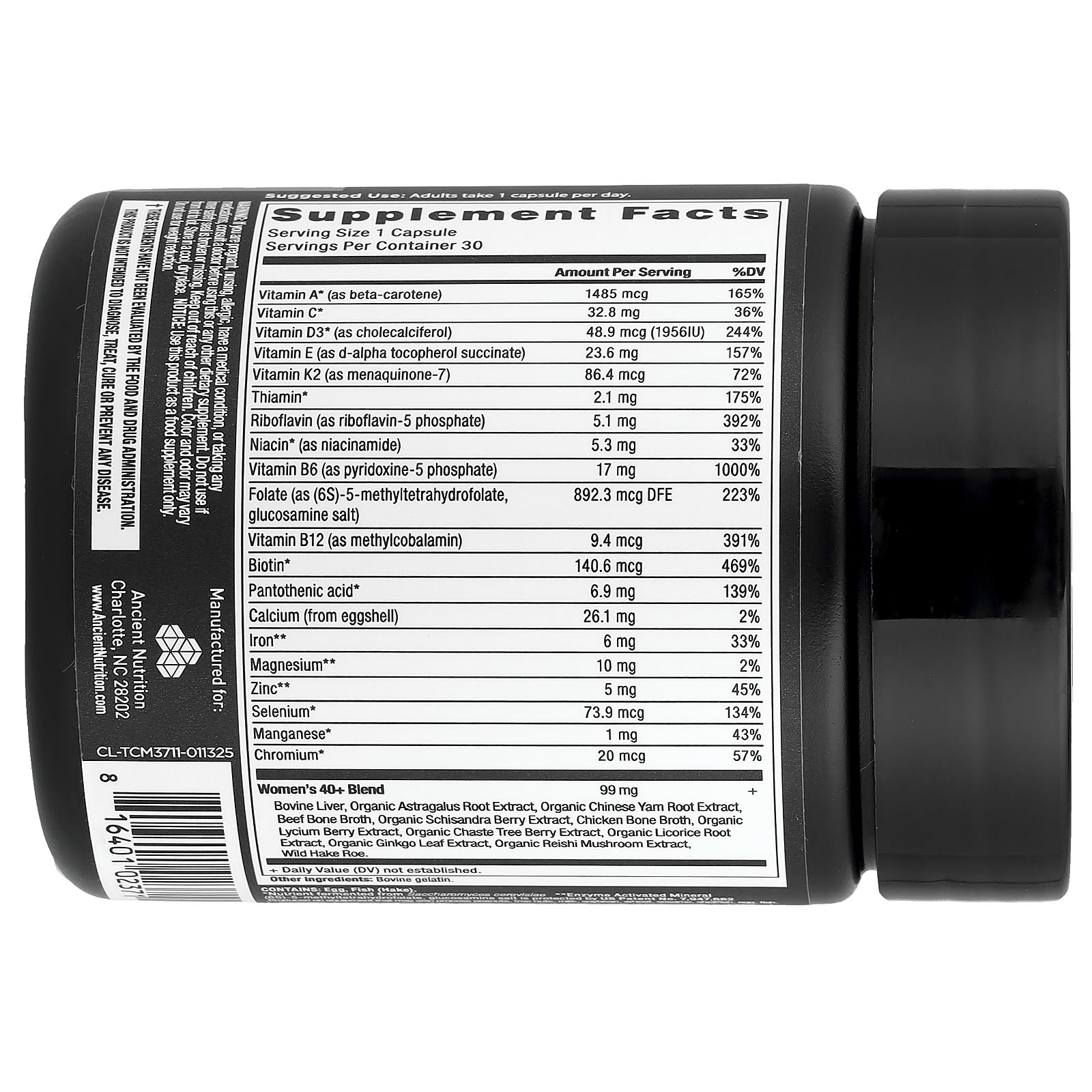 Эти мультивитамины для женщин 40+, разработанные для восполнения пробелов в питательных веществах в современном рационе, искусно разработаны на основе витаминов, минералов и проверенных временем ингредиентов суперфудов.