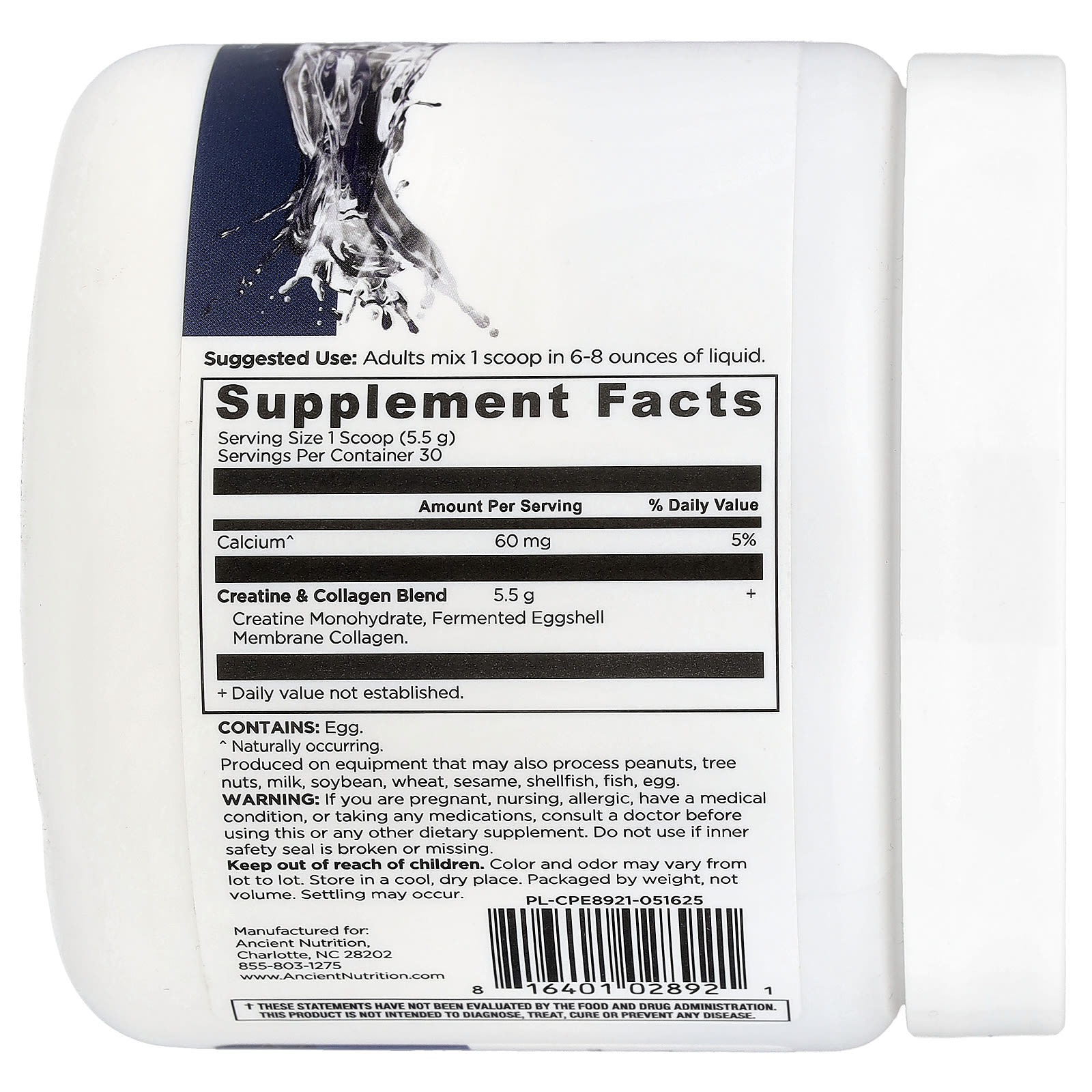 | Смесь креатина и коллагена Моногидрат креатина, мембранный коллаген из ферментированной яичной скорлупы | 5,5 г | + |