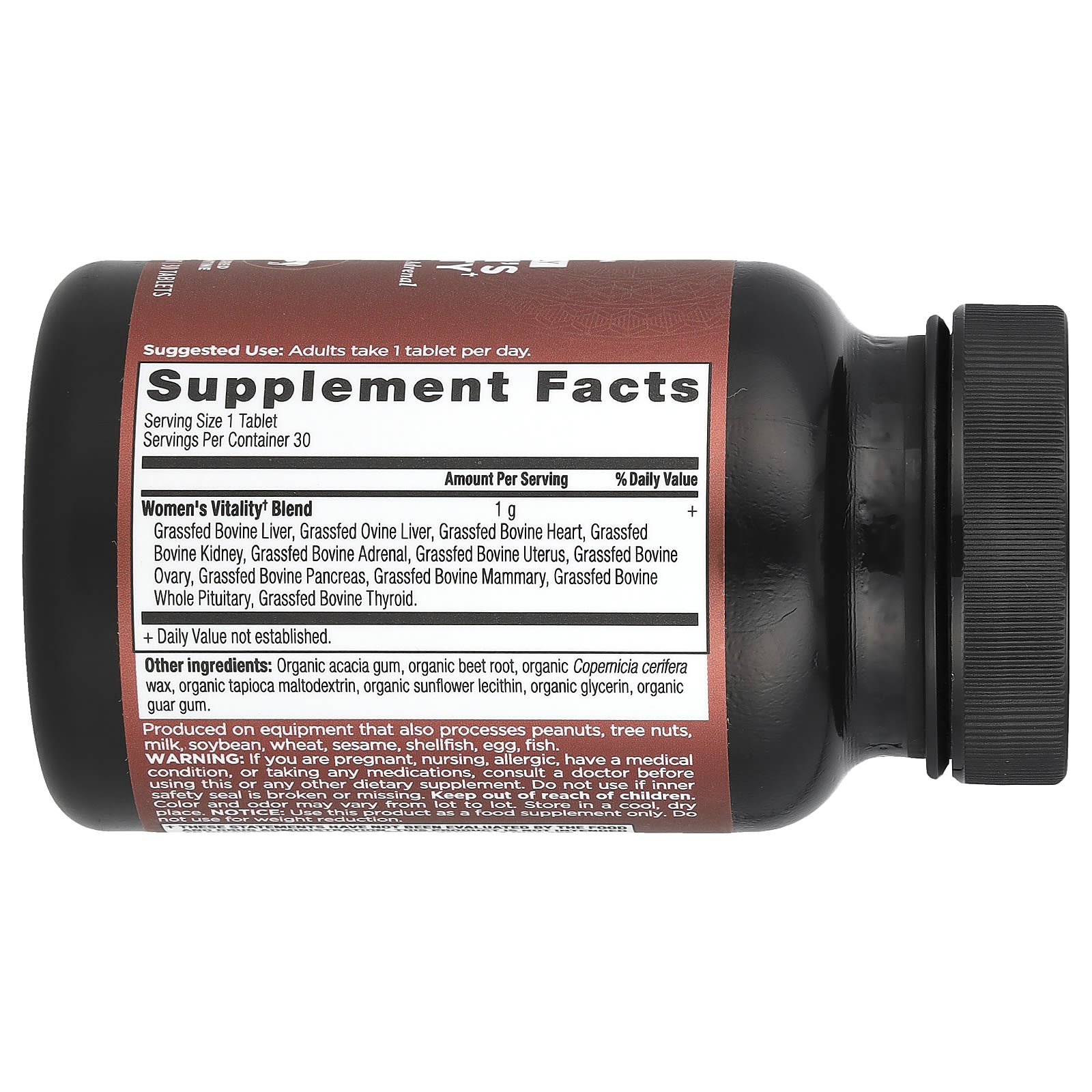 | Смесь Women's Vitality† Печень крупного рогатого скота, полученная на травяном откорме, печень крупного рогатого скота, выращенная на травах, сердце крупного рогатого скота, полученная на травяном откорме, надпочечники крупного рогатого скота, скармливаемая травой, матка крупного рогатого скота, яичник крупного рогатого скота на травяном откорме, поджелудочная железа крупного рогатого скота, щитовидная железяка | 1 г | + |