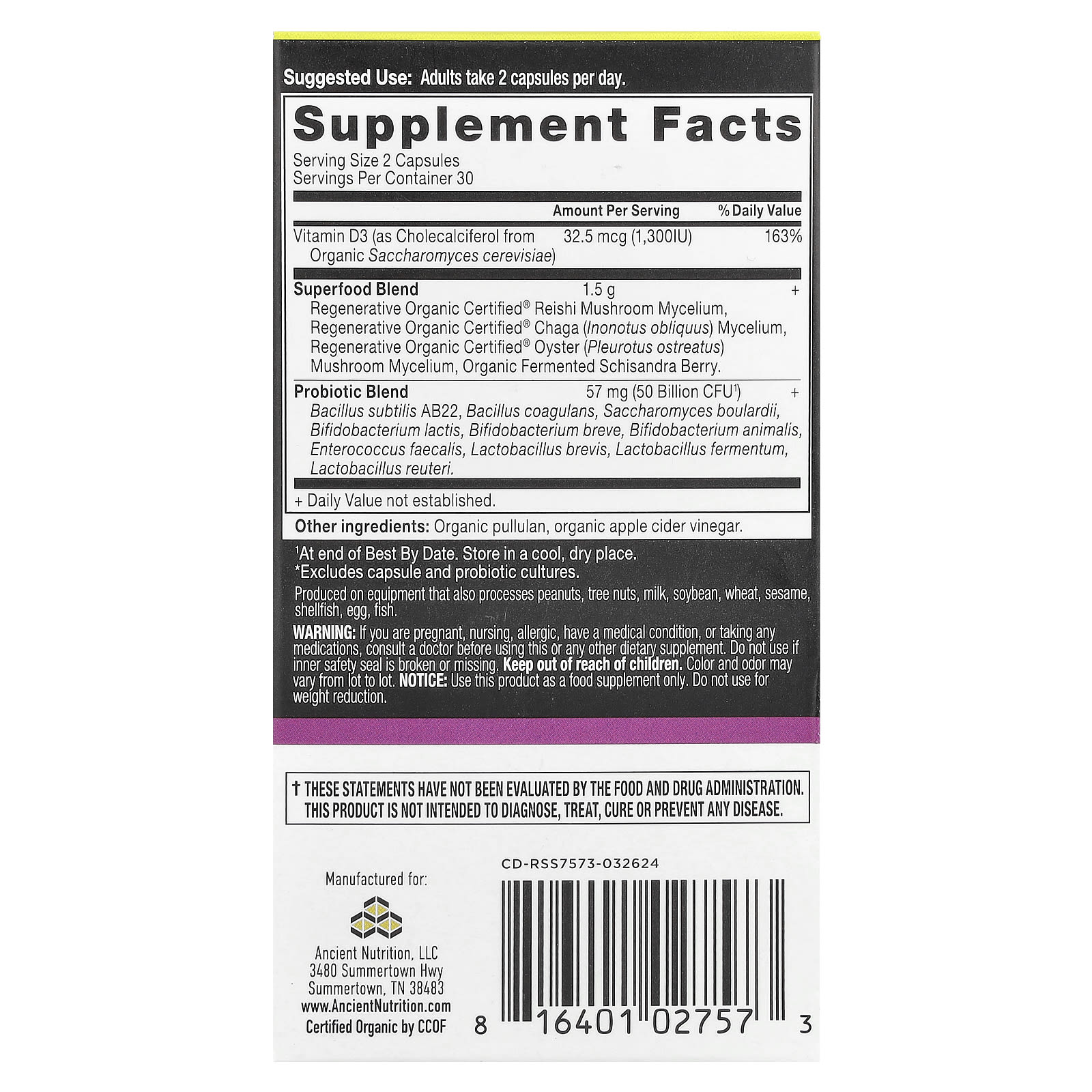 Клинически изученные пробиотики, включая устойчивые почвенные организмы, которые выживают и развиваются в суровых условиях кишечника. Кроме того, содержит пребиотики (энергия для пробиотиков) и постбиотики (полезные побочные продукты).