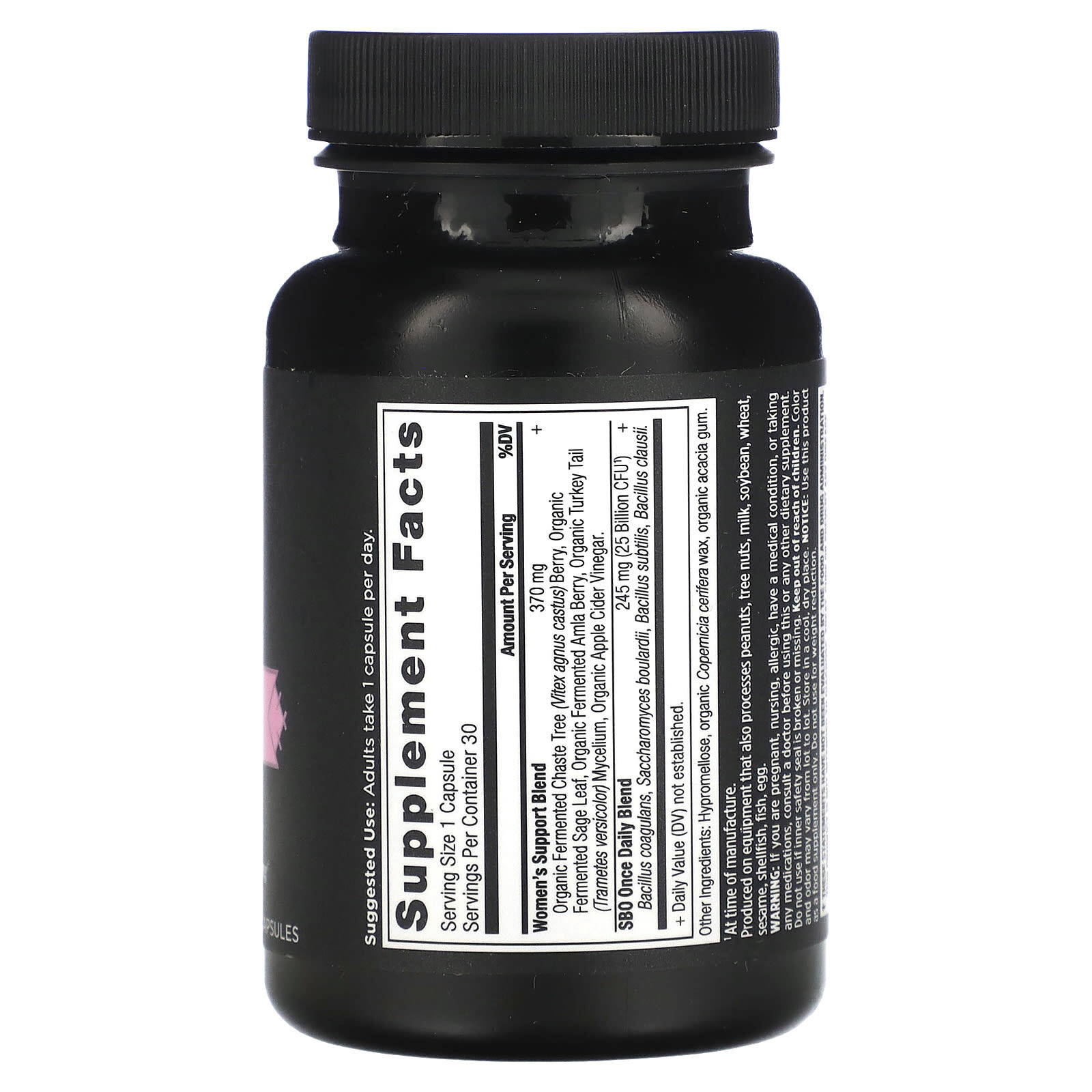 Смесь для поддержки женщин Органические ферментированные ягоды целомудренного дерева (Vitex agnus castus), листья органического ферментированного шалфея, органические ферментированные ягоды амлы, органический мицелий из хвоста индейки (Trametes versicolor), органический яблочный уксус. | 370 мг | + |