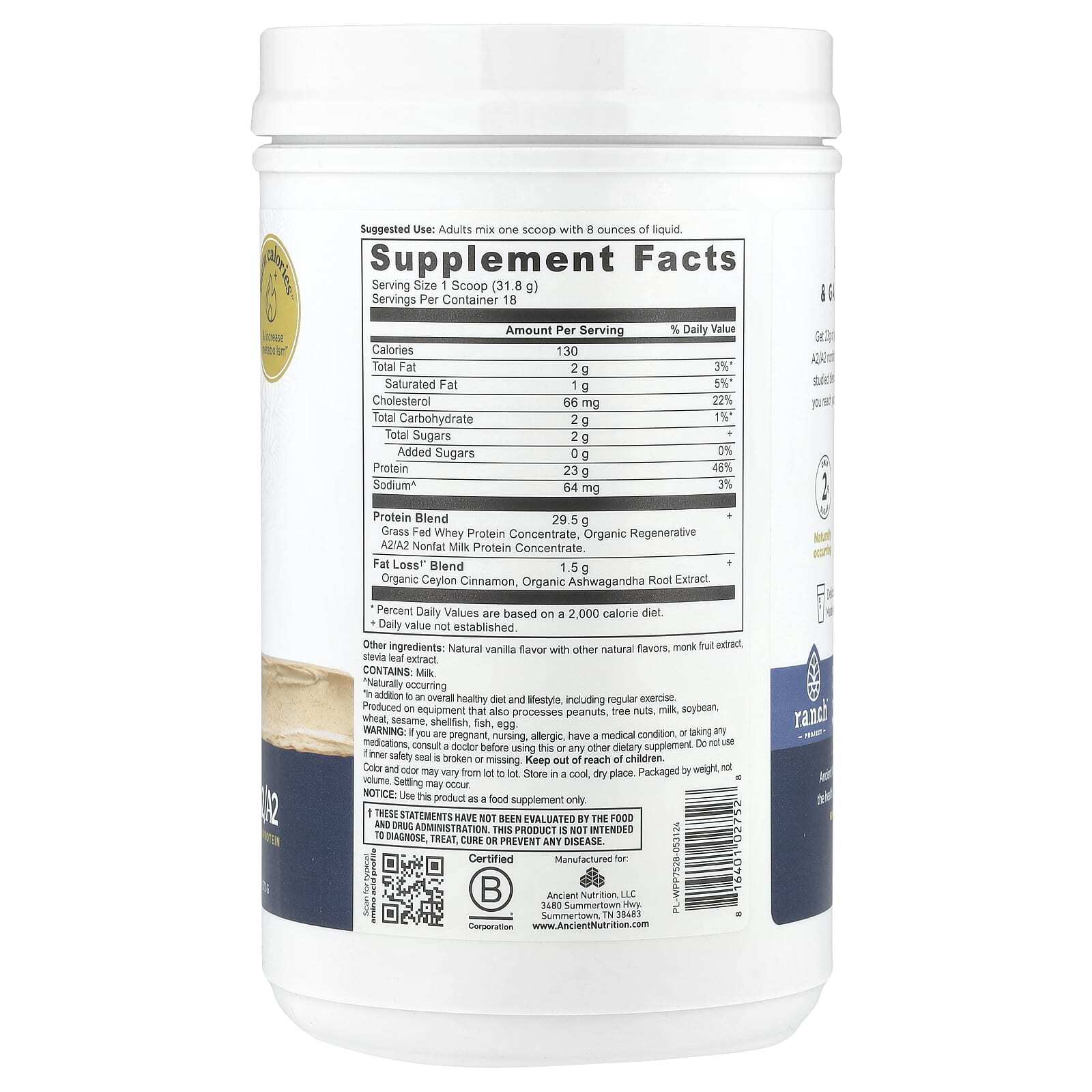 Ancient Nutrition, Смесь сывороточного протеина и жира, ваниль и корица, 572 г (1,26 фунта)