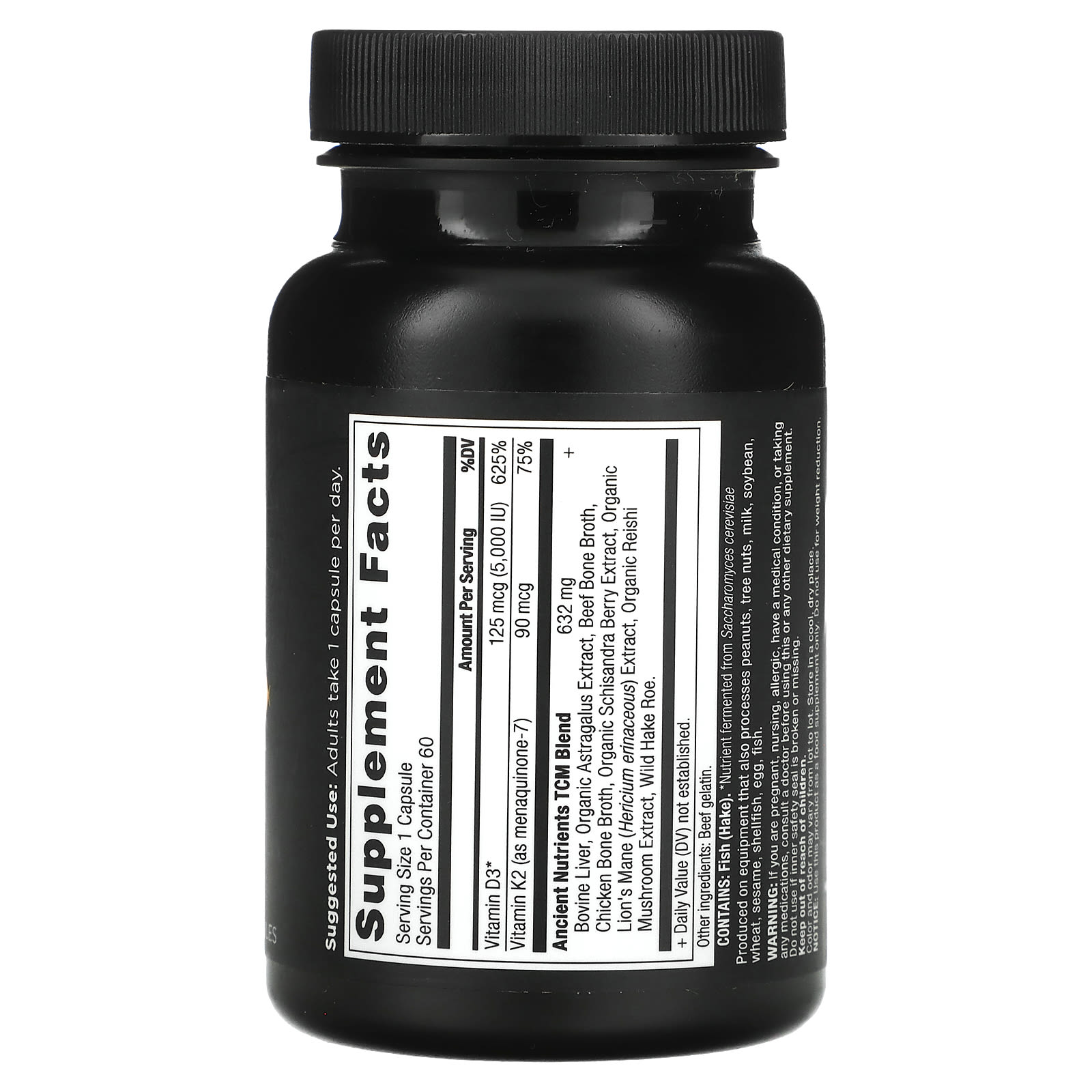| Смесь Ancient Nutrients TCM Бычья печень, органический экстракт астрагала, бульон из говяжьих костей, бульон из куриных костей, экстракт органических ягод лимонника, экстракт органического ежовика гребенчатого (Hericium erinaceous), экстракт органического гриба рейши, икра дикого хека. | 632 мг | † |