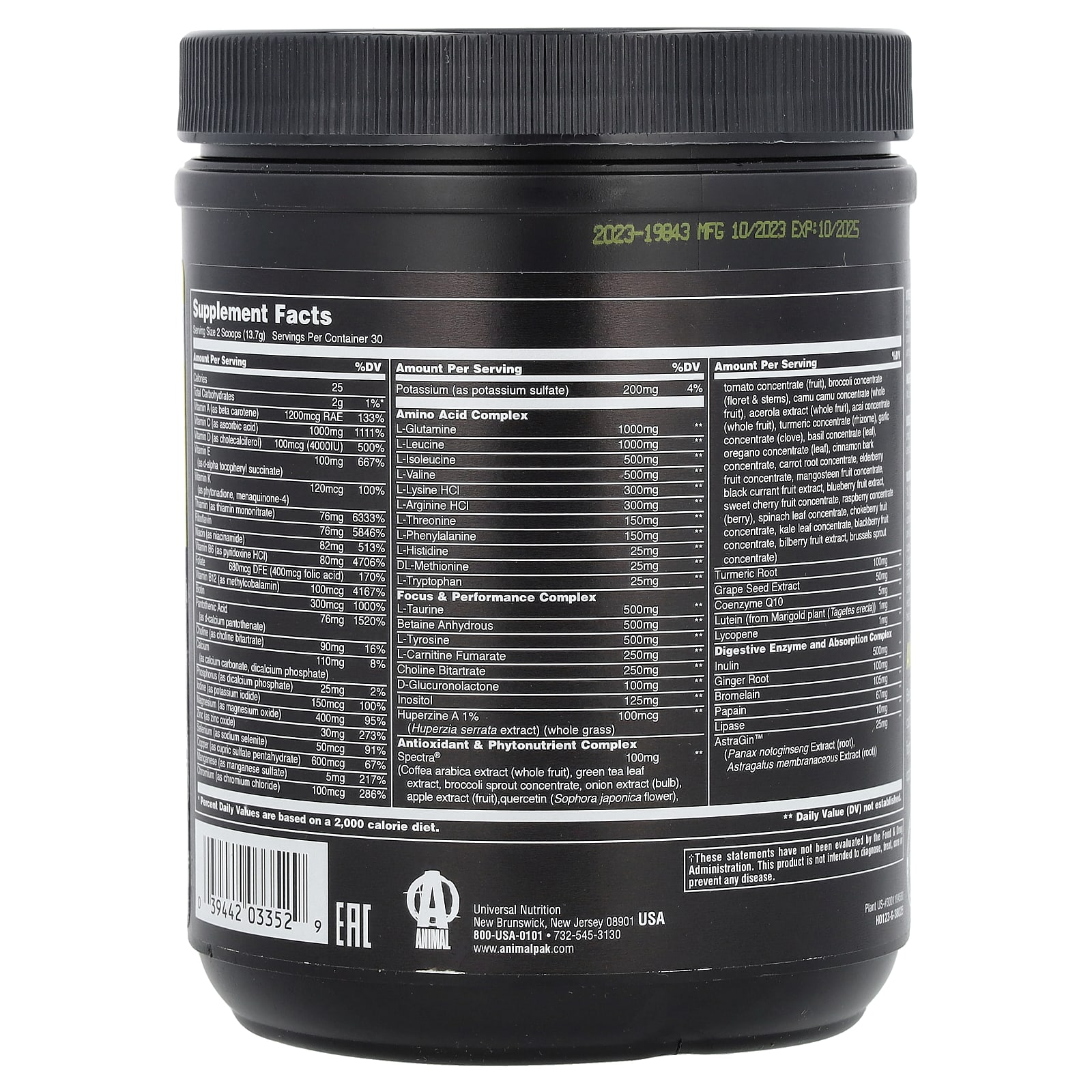 Наш ведущий мультивитаминный порошок Animal Pak Powder теперь имеет больше порций, лучший вкус и более выгодную цену. Порошок Pak Powder, содержащий более 85 легкоусвояемых питательных веществ, представляет собой больше, чем мультивитамин, и разработан для улучшения тренировок и повышения уровня энергии в повседневной жизни за счет эффективного сочетания витаминов, минералов, аминокислот и трав. Animal Pak Powder - это ежедневная добавка, которая эффективна как для мужчин, так и для женщин, помогает подготовиться к росту мышц и оптимальной производительности как в когнитивном, так и в физическом плане, когда вы преследуете свои цели в фитнесе.