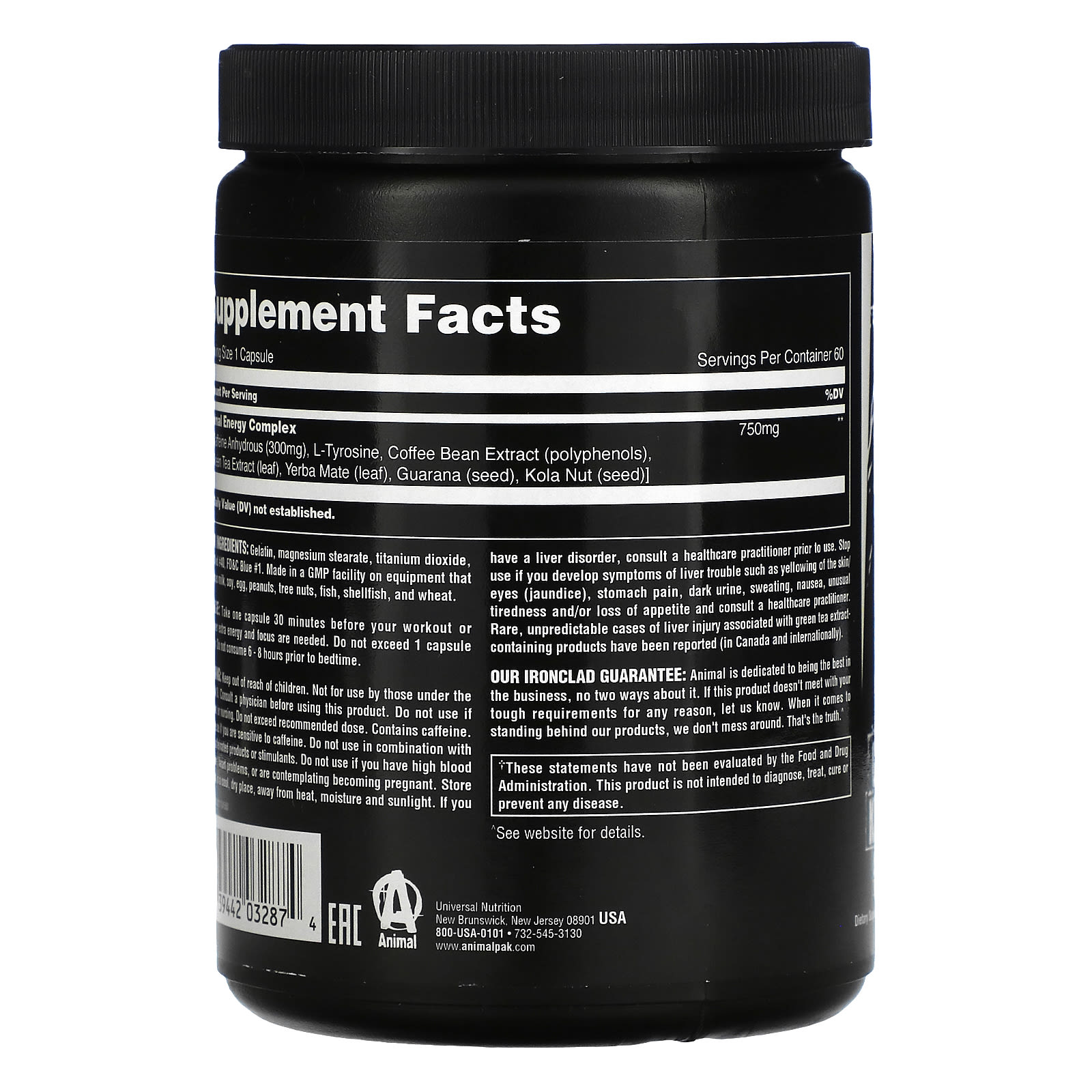 | Животный энергетический комплекс [Безводный кофеин (300 мг), L-тирозин, экстракт кофейных зерен (полифенолы), экстракт зеленого чая (листья), мате (лист), гуарана (семена), кольский орех (семена)] | 750 мг | ** |