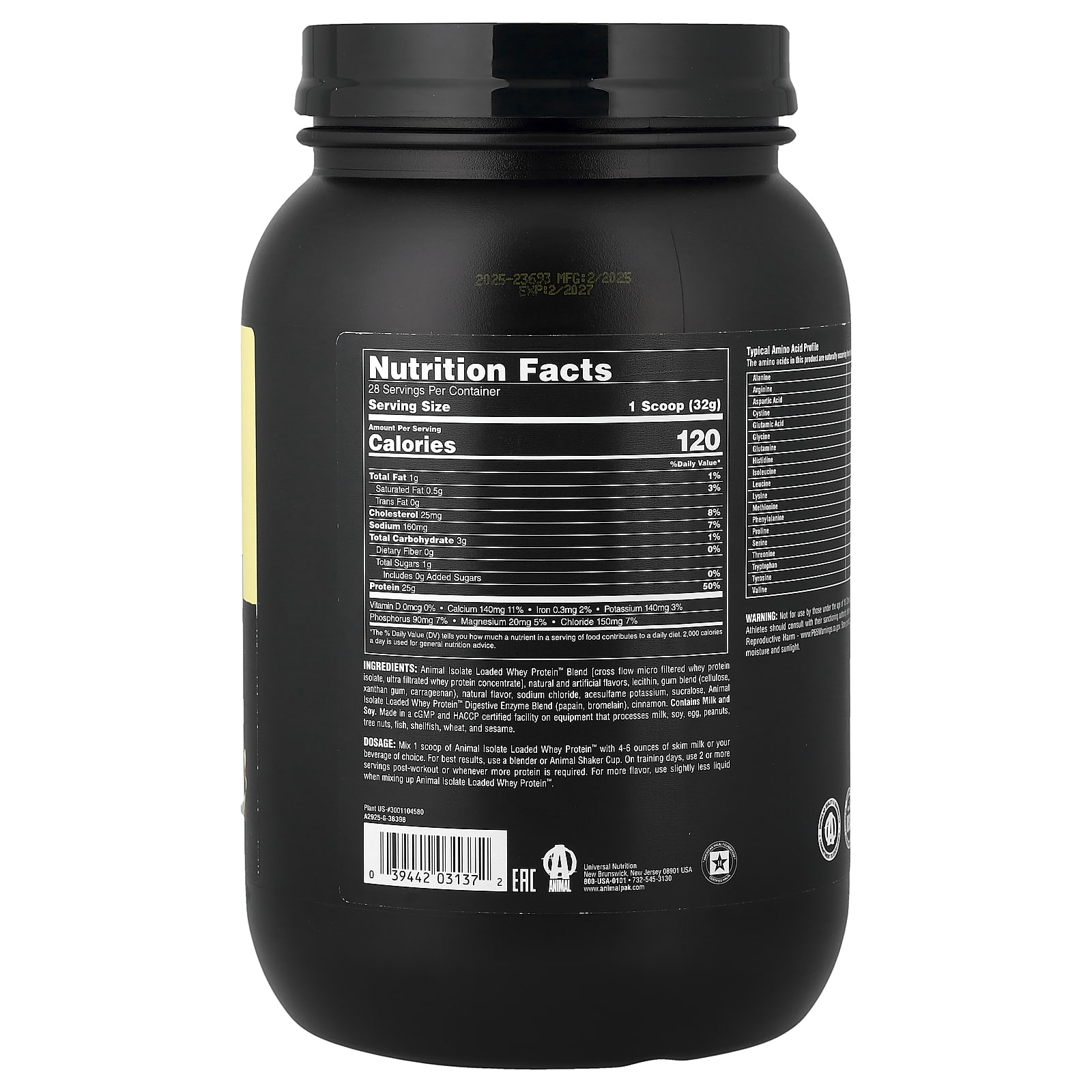 Whey Protein™ с изолятом Animal Loaded Whey Protein™ разработан для поддержки самых увлеченных и преданных своему делу спортсменов. Содержит 25 г белка в одной порции, что делает ее концентрированным источником незаменимых аминокислот, необходимых для наращивания мышц и восстановления. Его быстрое переваривание и всасывание обеспечивают быструю доставку жизненно важных питательных веществ к мышцам, что способствует эффективному восстановлению и росту. Whey Protein™ с изолятом Animal Loaded — это удобное и универсальное решение для удовлетворения ваших ежедневных потребностей в белке.