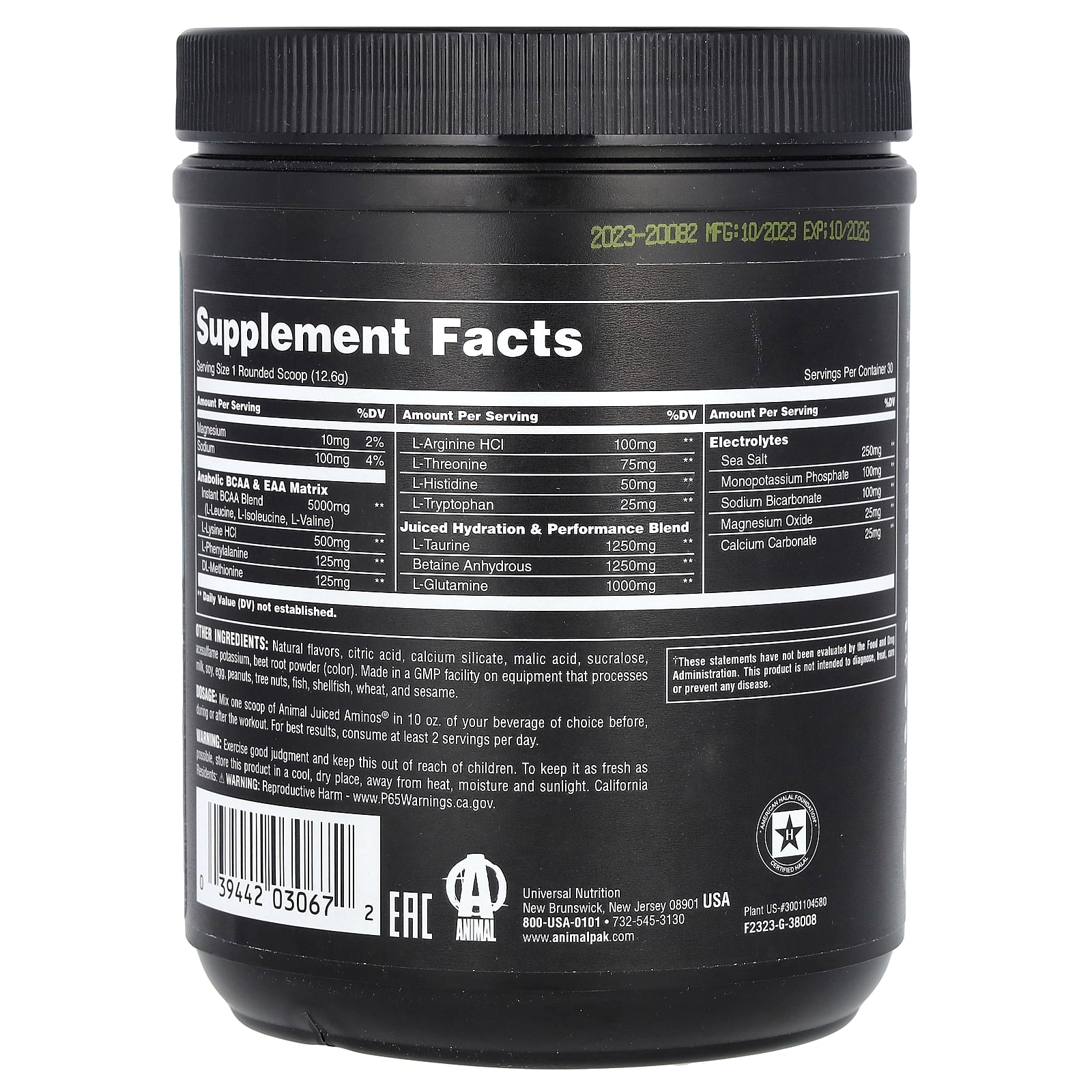 Смешайте одну мерную ложку порошка Animal Juiced Aminos с 300 мл (10 унциями) напитка по вашему выбору до, во время или после тренировки. Для достижения оптимальных результатов принимайте не менее 2 порций в день.