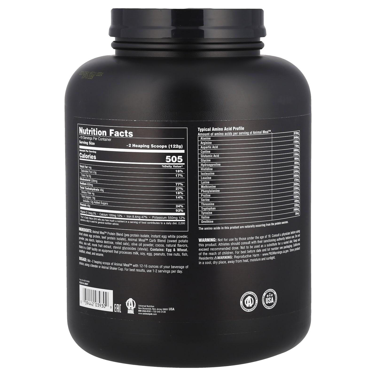 Animal Meal ™ использует силу полезных, цельных пищевых ингредиентов, чтобы предоставить спортсменам комплексное, устойчивое и полноценное решение. Благодаря сбалансированному соотношению белков и углеводов, этот продукт обеспечивает максимальную работоспособность. Сбалансированное питание Animal Meal ™ - в любое время или в качестве замены еды - является надежным источником питания без использования искусственных красителей, ароматизаторов, подсластителей и консервантов. Каждая порция предназначена для улучшения общего состояния здоровья и физической формы, а ее формула обеспечивает легкое переваривание и усвоение жизненно важных питательных веществ.