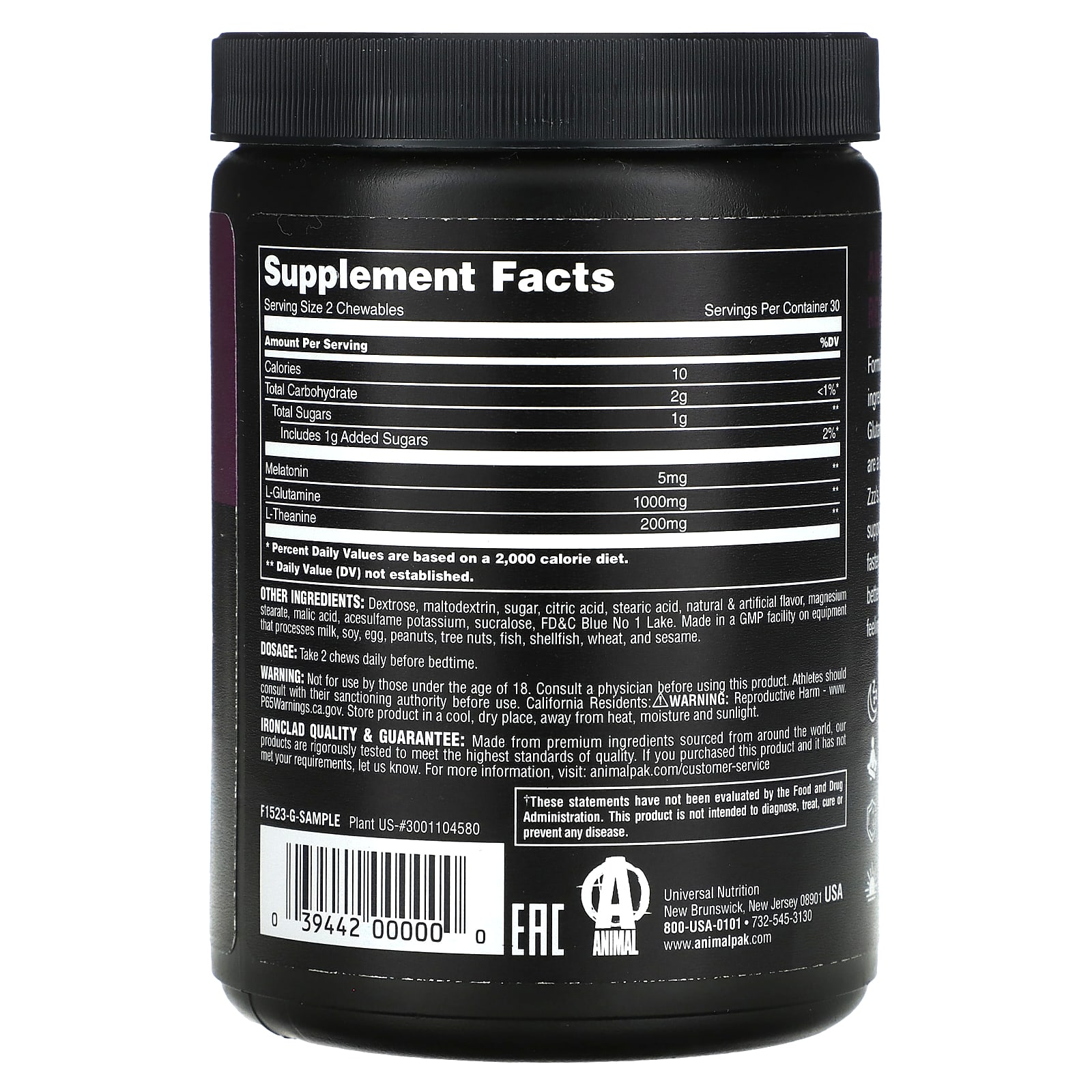 Содержит основные ингредиенты для сна и расслабления — мелатонин, теанин и глутамин. Жевательные таблетки для восстановления сна Animal Sleep Recovery Chews™ — это удобный и вкусный способ получить заряд бодрости. Наши жевательные таблетки помогают успокоиться и снизить уровень стресса, помогают быстрее заснуть, дольше спать и улучшать качество сна, поэтому вы будете просыпаться отдохнувшими.