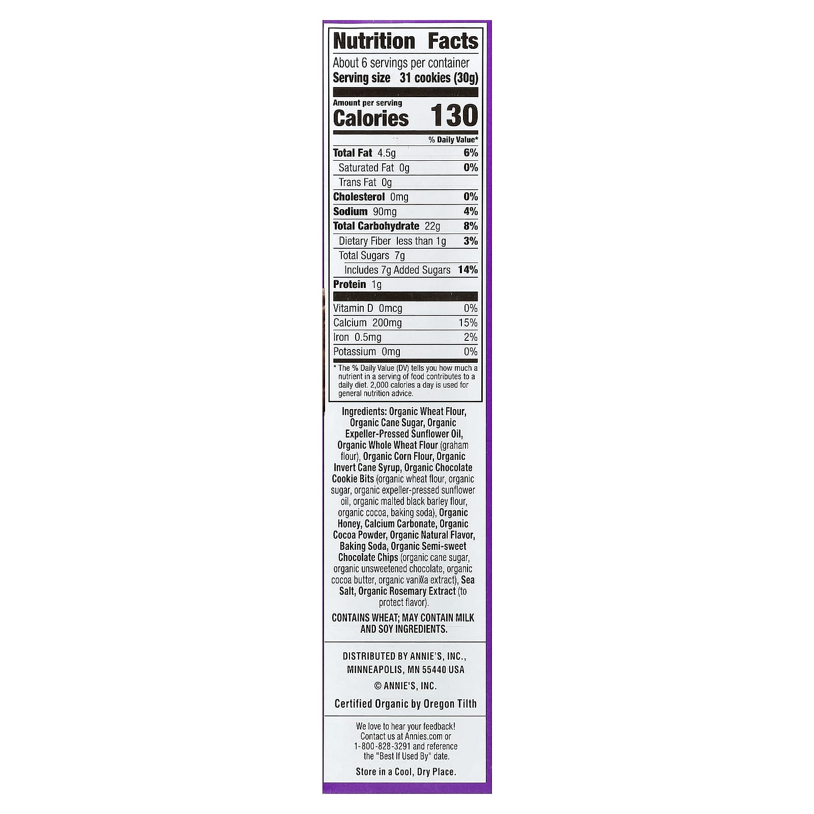 Органическая пшеничная мука, органический тростниковый сахар, органическое подсолнечное масло первого отжима, органическая цельнозерновая мука (мука из крекеров), органическая кукурузная мука, органический инвертный тростниковый сироп, органические кусочки шоколадного печенья (органическая пшеничная мука, органический сахар, органическое подсолнечное масло первого отжима, мука из органического солодового черного ячменя, органическое какао, пищевая сода), органический мед, карбонат кальция, органический какао-порошок, органический натуральный ароматизатор, Пищевая сода, органические полусладкие кусочки шоколада (органический тростниковый сахар, органический горький шоколад, органическое какао-масло, органический ванильный экстракт), морская соль, экстракт органического розмарина (для защиты аромата).