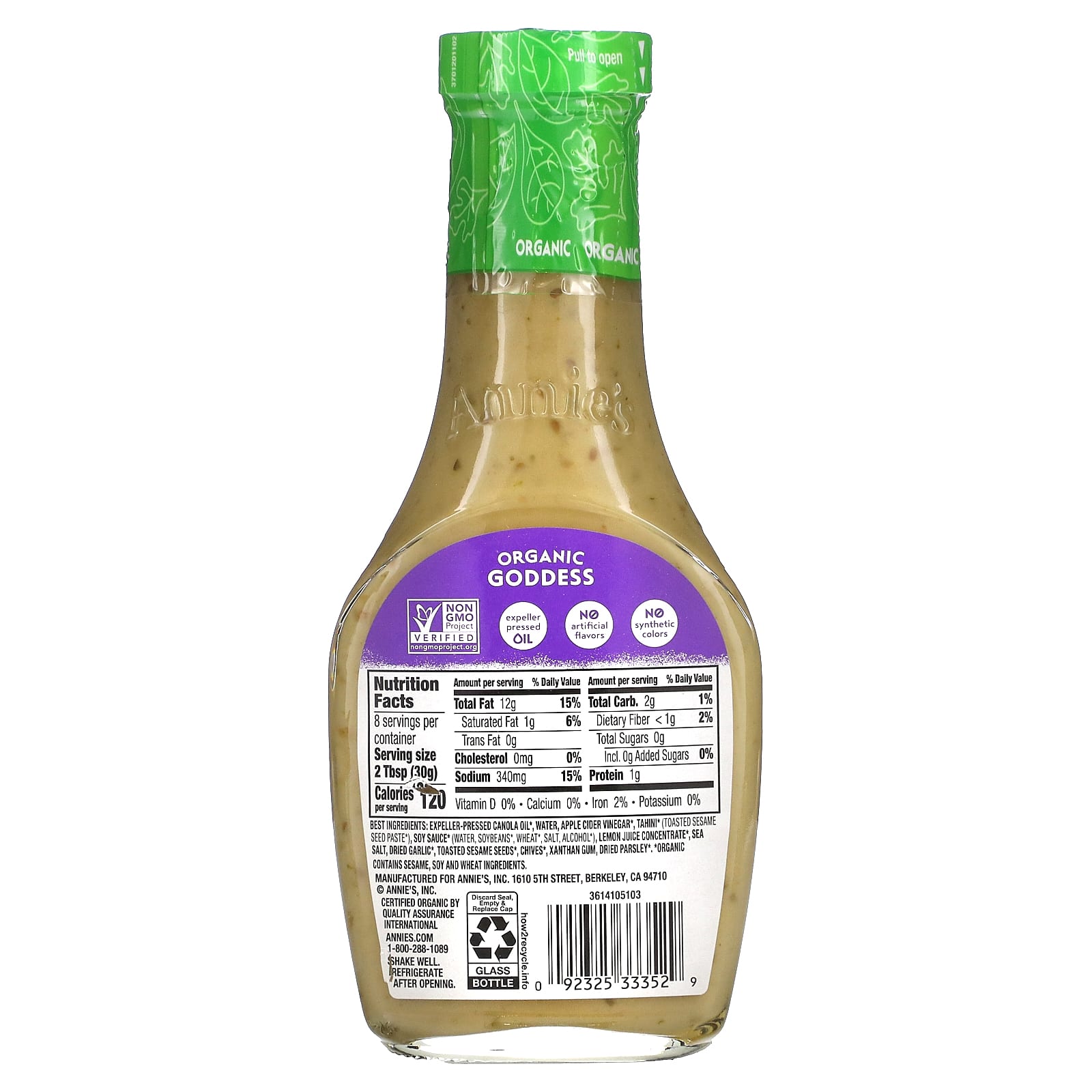 В 1920-х годах отель Palace в Сан-Франциско удостоился чести актера Джорджа Арлисса, который выступал в роли заправки для салата в спектакле «Зеленая богиня». Но заправка Annie's Goddess - кремовая тахини и лимонная заправка с чесноком и петрушкой - по-настоящему восхитительна. Поклонники Анни описывают его как «вызывающий привыкание», «пригодный для питья» и «невероятно вкусный». Попробуйте сами!