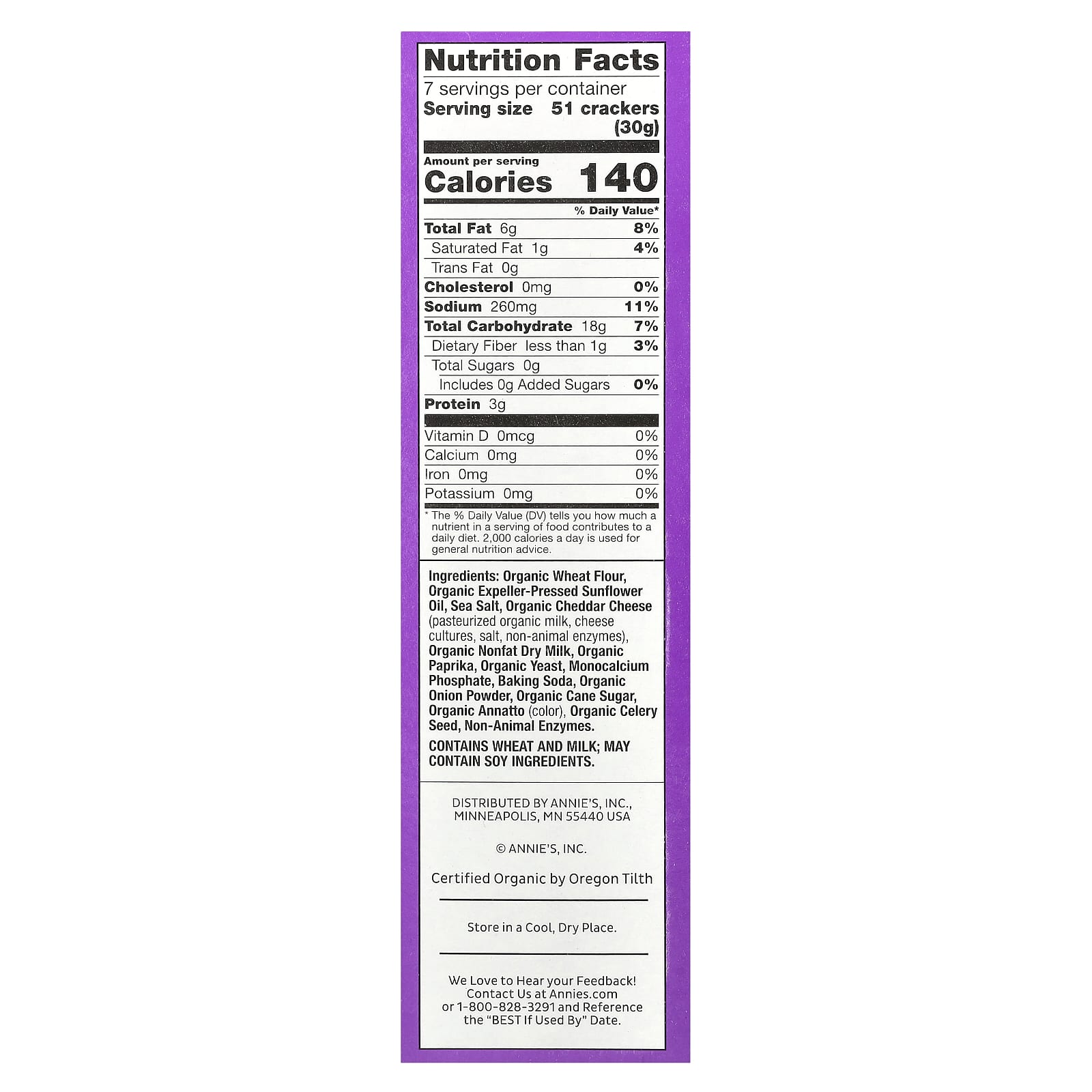 Органическая пшеничная мука, подсолнечное масло органического отжима, морская соль, органический сыр чеддер (пастеризованное органическое молоко, сырные культуры, соль, ферменты неживотного происхождения), органическое обезжиренное сухое молоко, органическая паприка, органические дрожжи, монокальций фосфат, пищевая сода, органический луковый порошок, органический тростниковый сахар, органический аннато (краситель), органические семена сельдерея, ферменты неживотного происхождения.