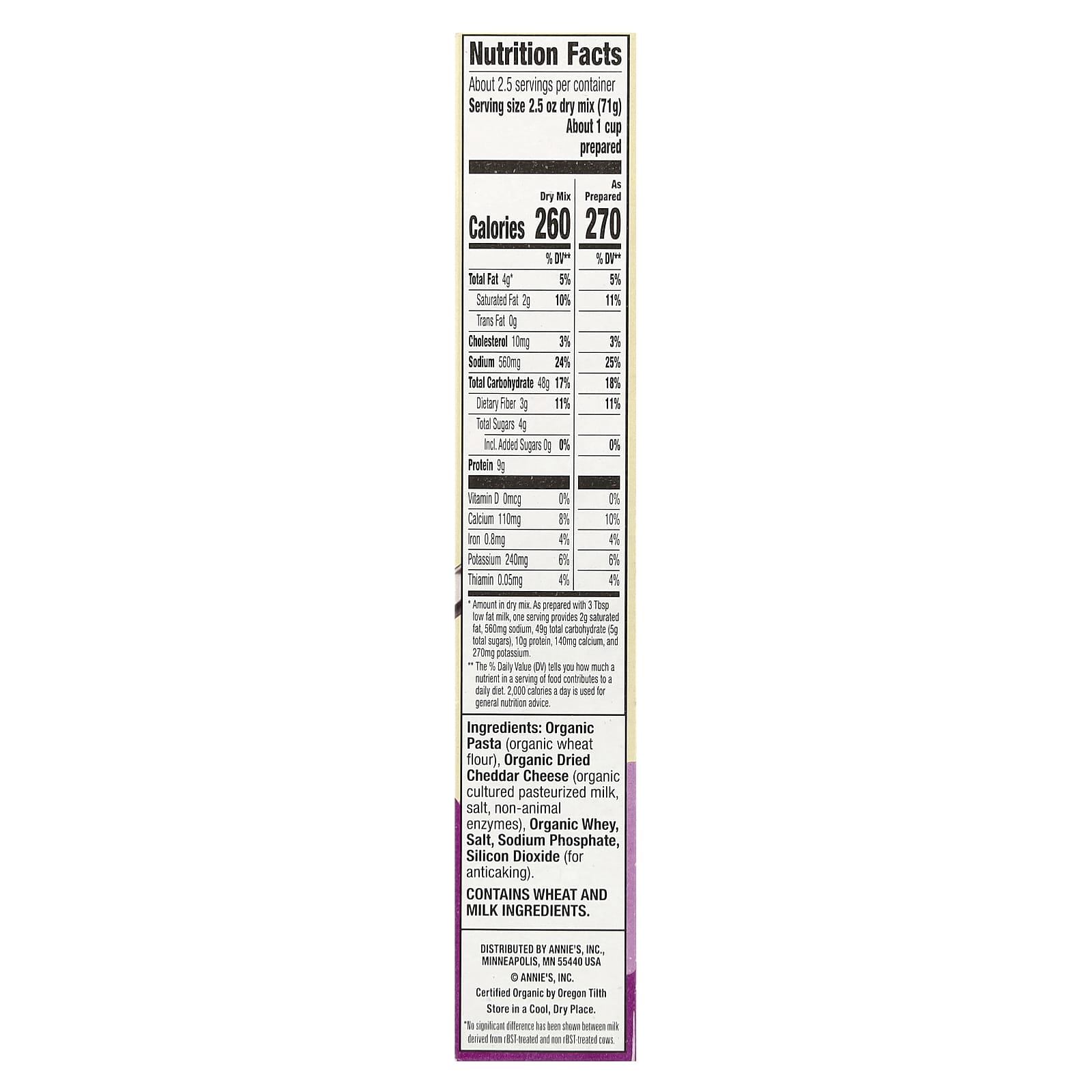 Органическая паста (органическая пшеничная мука), органический сушеный сыр чеддер (органическое пастеризованное молоко, соль, ферменты неживотного происхождения), органическая сыворотка, соль, фосфат натрия, диоксид кремния (для предотвращения слеживания).