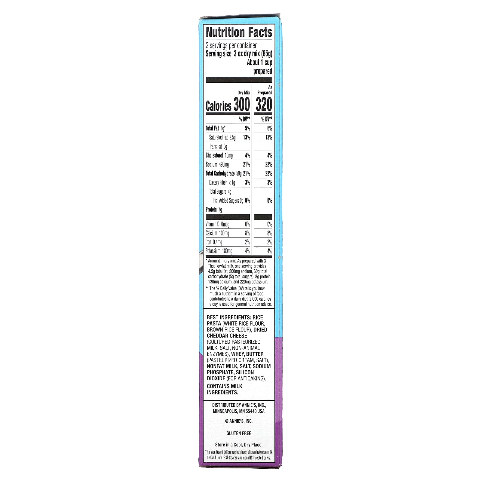 Рисовые макароны (мука из белого риса, мука из коричневого риса), высушенный сыр чеддер (сквашенное пастеризованное молоко, соль, ферменты растительного происхождения), сыворотка, сливочное масло (пастеризованные сливки, соль), обезжиренное молоко, соли, фосфат натрия, диоксид кремния (для предотвращения слеживания).