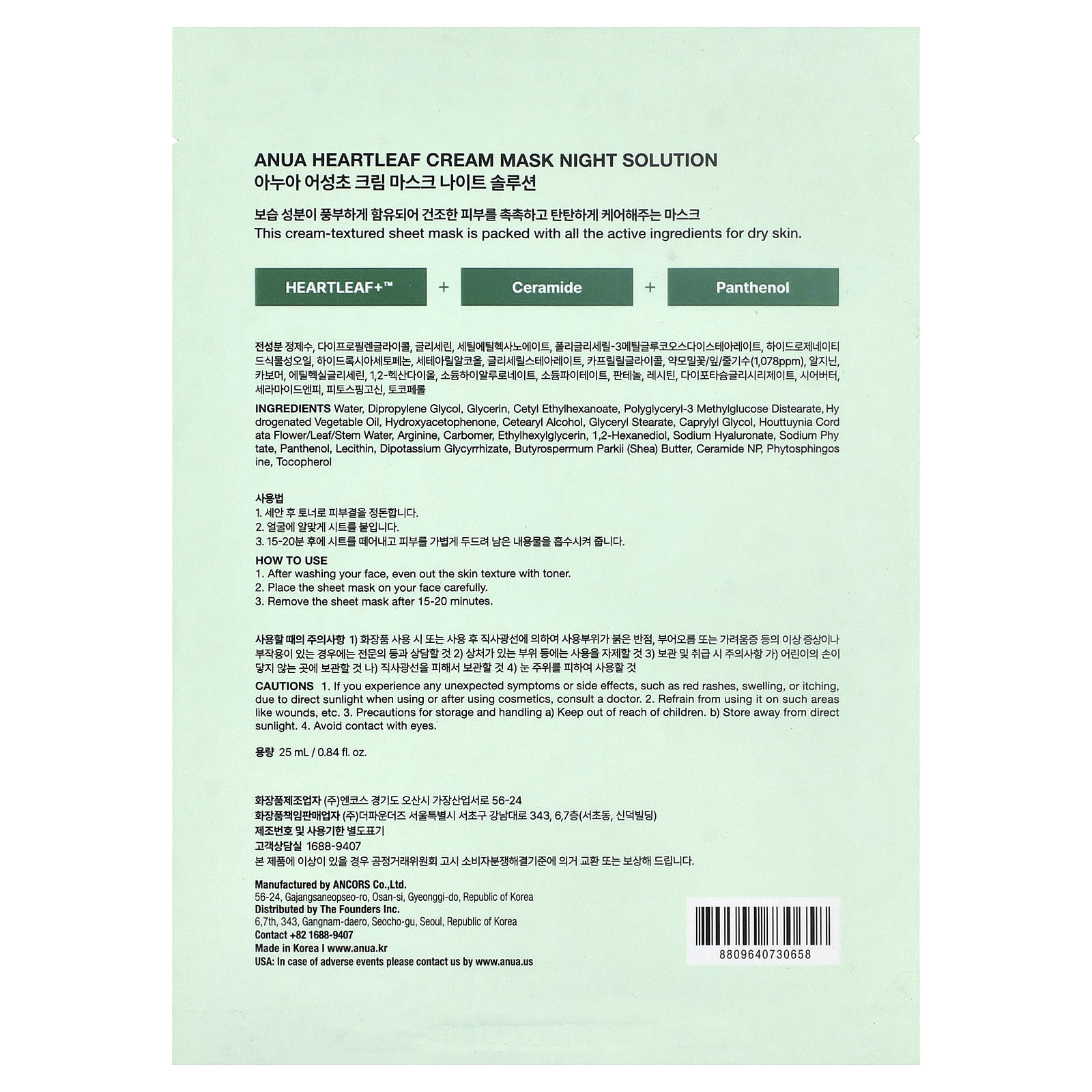 Вода, дипропиленгликоль, глицерин, цетилэтилгексаноат, полиглицерил-3 метилглюкозы дистеарат, гидрогенизированное растительное масло, гидроксиацетофенон, цетеариловый спирт, глицерил стеарат, каприлилгликоль, вода из цветков/листьев/стеблей хауттюйнии (Houttuynia cordata), аргинин, карбомер, этилгексилглицерин, 1,2-гександиол, гиалуронат натрия, фитат натрия, пантенол, лецитин, дикалия глицирризат, масло ши (Butyrospermum parkii), керамид NP, фитосфингозин, токоферол.