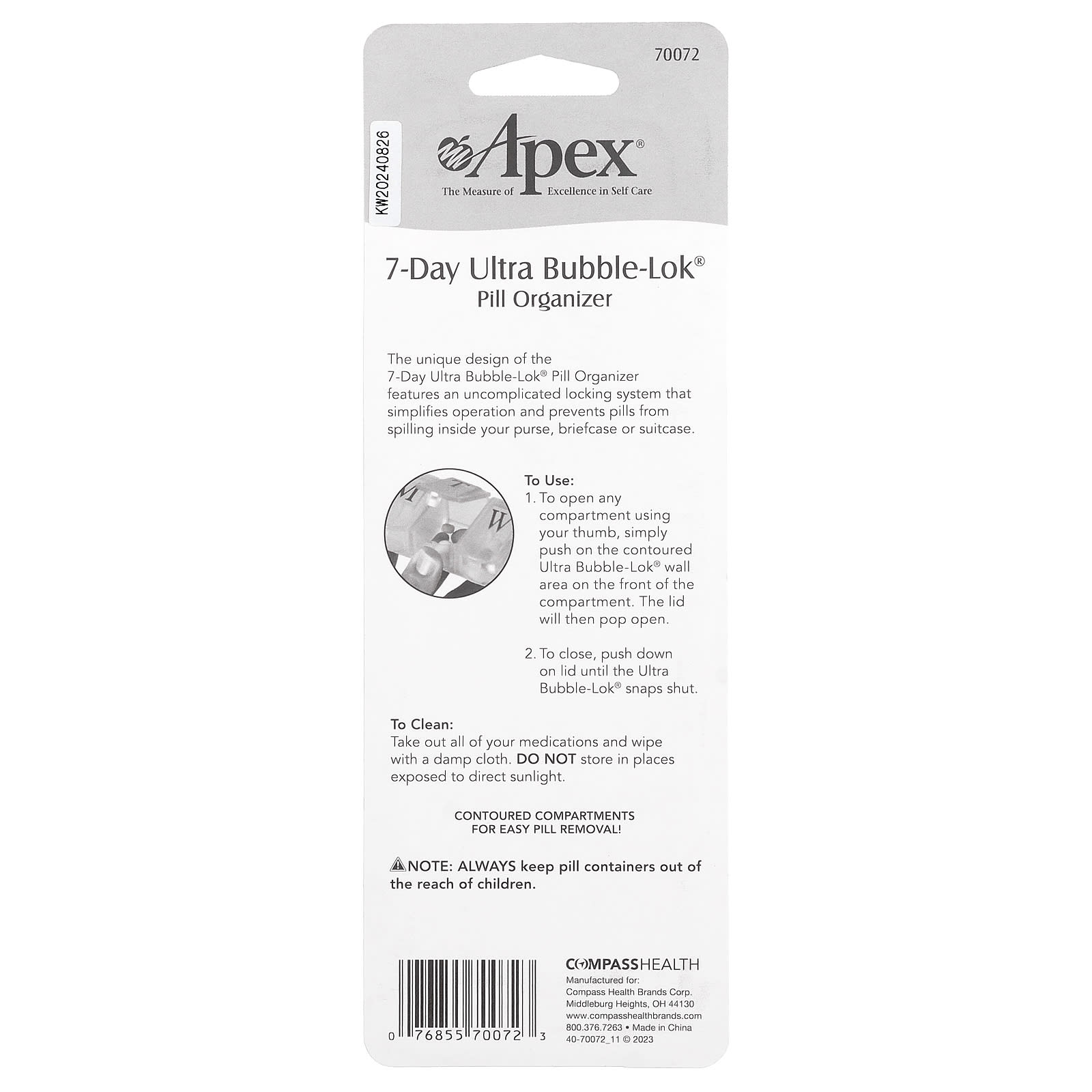 Подана заявка на патентирование уникальной разработки органайзера для таблеток 7-Day Ultra Bubble-Lok®. В его состав входит несложная система блокировки, которая упрощает использование Крышка не откроется при падении органайзера.
