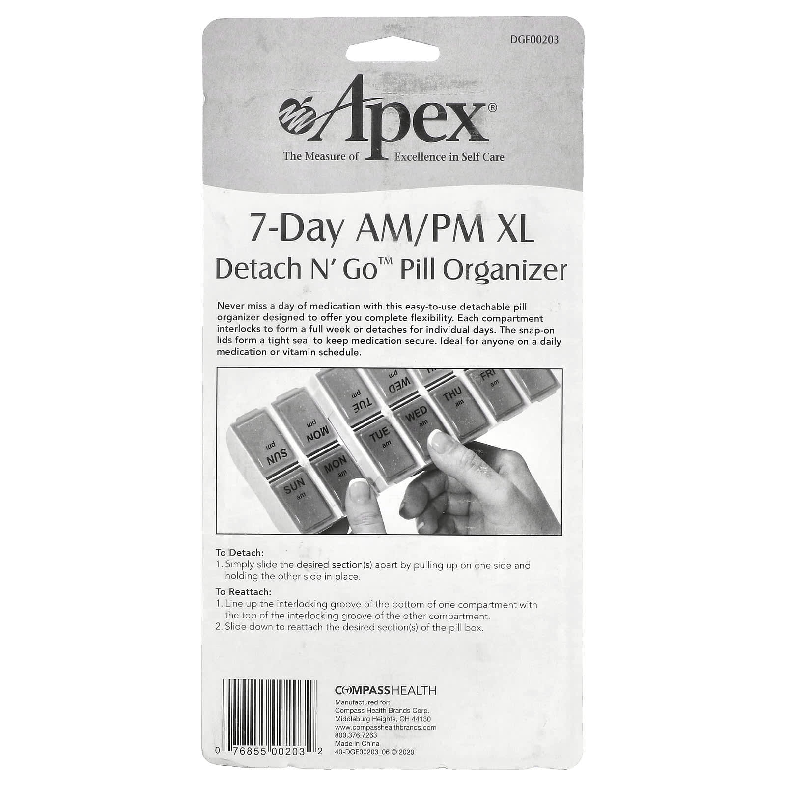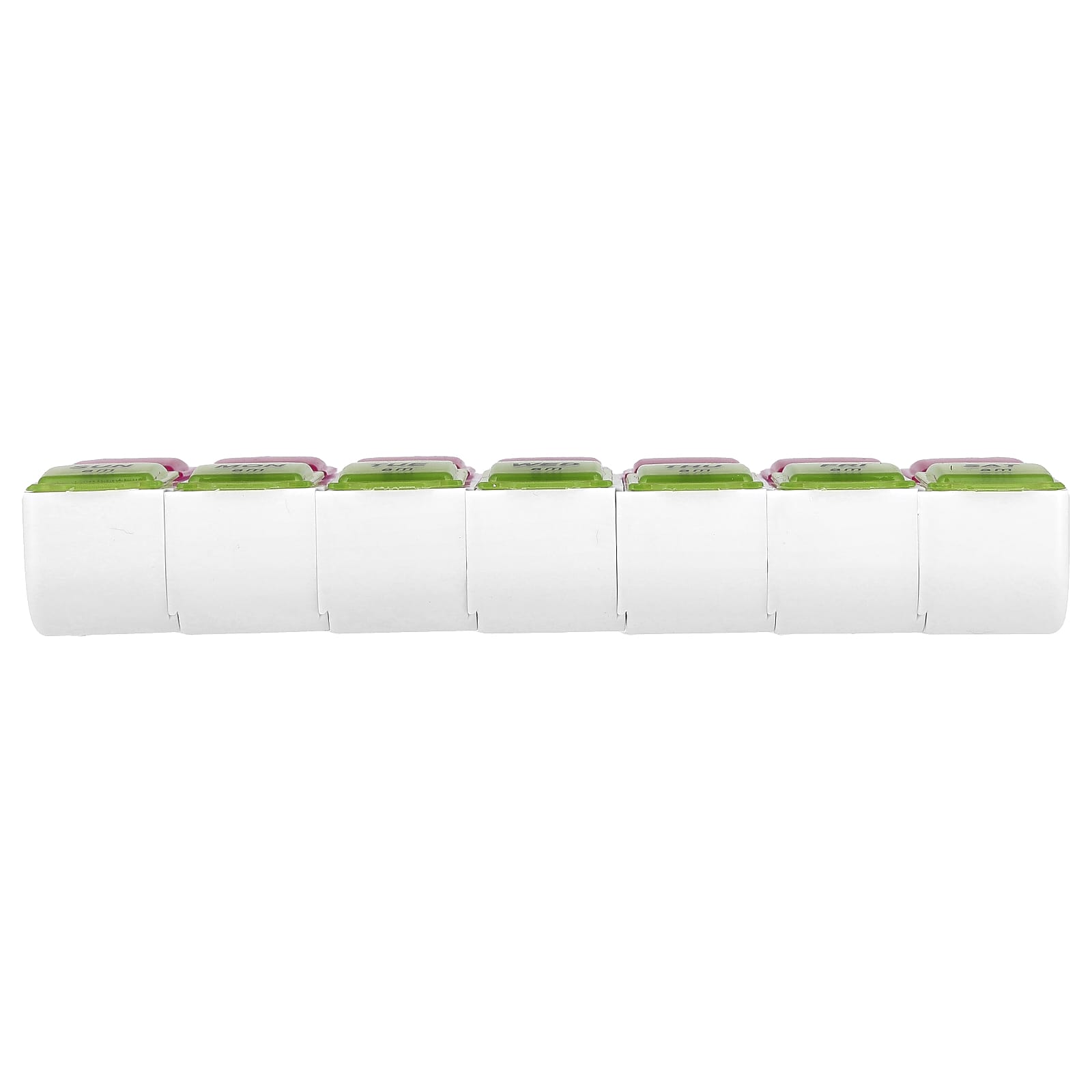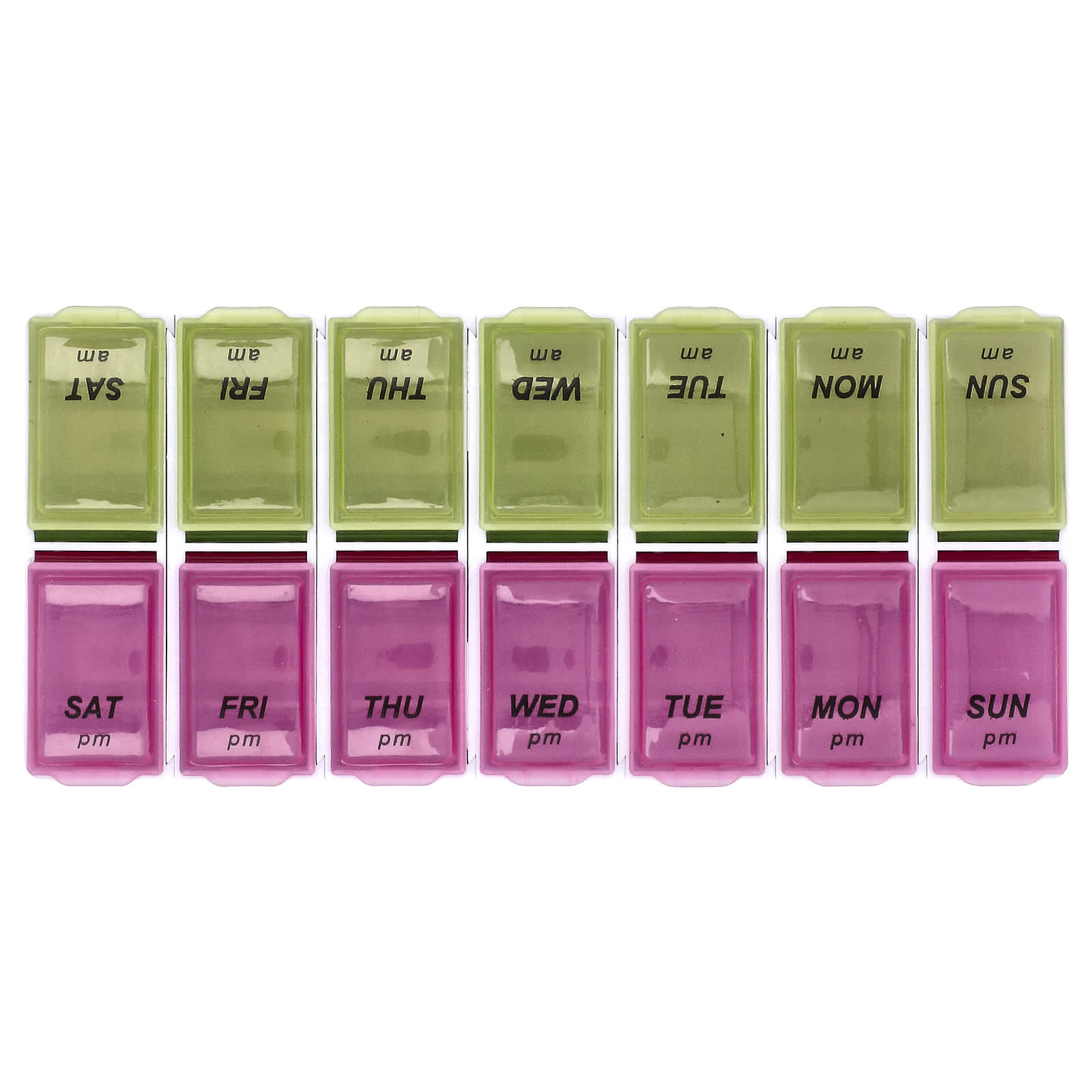 Не пропускайте прием препаратов благодаря этому простому в использовании съемному органайзеру для таблеток, разработанному для обеспечения полной гибкости. Каждое отделение блокируется для формирования капсул на неделю или отсоединяется для отдельных дней. Застегивающиеся крышки плотно прилегают и обеспечивают безопасность приема препаратов. Идеально подходит для тех, кто ежедневно принимает лекарства или витамины.