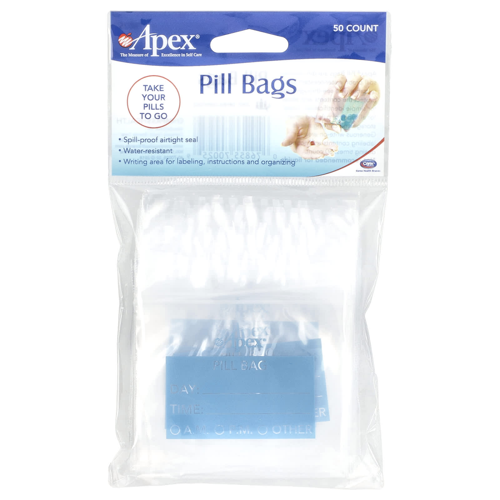 Пакетики для таблеток Apex немаркие, изготовлены из водостойкого материала, предотвращают случайное рассыпание содержимого и предназначены для многоразового использования. Прозрачные пакетики защищают содержимое и облегчают его распознавание. Отлично подходят для всех видов таблеток и для хранения и переноски других мелких вещей. Большая площадь для нанесения надписей для маркировки содержимого и времени приема.