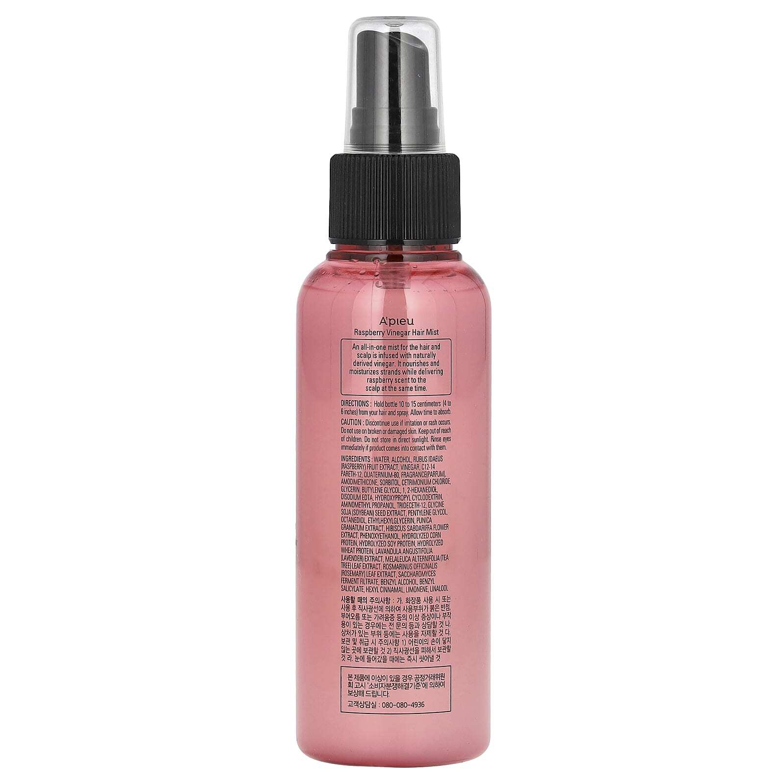 Универсальный спрей для волос и кожи головы содержит уксус натурального происхождения. Он питает и увлажняет пряди и одновременно придает коже головы малиновый аромат.
