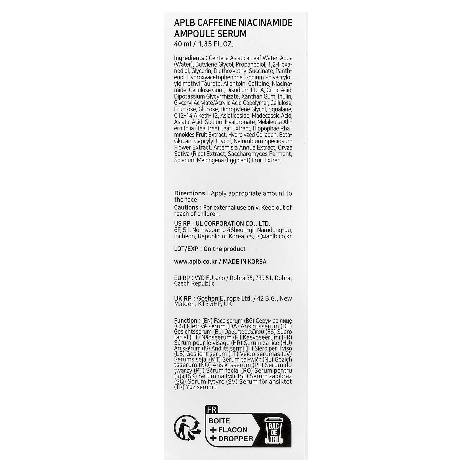 - Кофеин, ниацинамид, вода из листьев центеллы азиатской
