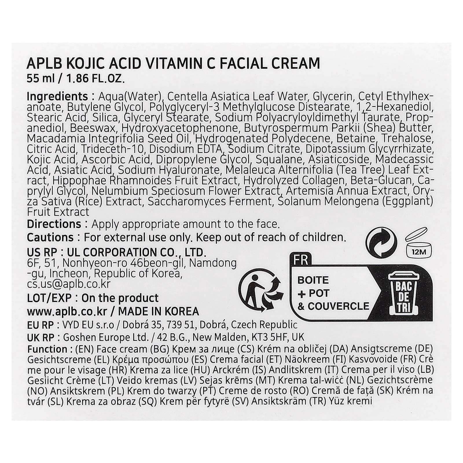Вода, вода из листьев готу колы (Centella asiatica), глицерин, цетилэтилгексаноат, бутиленгликоль, полиглицерил-3 метилглюкозы дистеарат, 1,2-гександиол, стеариновая кислота, диоксид кремния, глицерил стеарат, полиакрилодиметил таурат натрия, пропандиол, пчелиный воск, гидроксиацетофенон, масло ши (Butyrospermum parkii), масло макадамии (Macadamia integrifolia), гидрогенизированный полидецен, бетаин, трегалоза, лимонная кислота, тридецет-10, двунатриевая ЭДТК, цитрат натрия, дикалия глицирризат, койевая кислота, аскорбиновая кислота, дипропиленгликоль, сквалан, азиатикозид, мадекассовая кислота, азиатиковая кислота, гиалуронат натрия, экстракт листьев чайного дерева (Melaleuca alternifolia), экстракт плодов облепихи крушиновидной (Hippophae rhamnoides), гидролизованный коллаген, бета-глюкан, каприлилгликоль, экстракт цветков лотоса (Nelumbium speciosum), экстракт полыни однолетней (Artemisia annua), экстракт риса (Oryza sativa), продукт ферментации сахаромицетов, экстракт плодов баклажана (Solanum melongena).