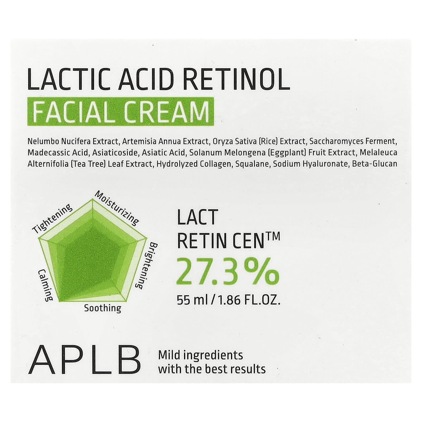 Этот крем для лица с 27,3% LACT RETIN CEN ™ разглаживает неровную кожу, сужает расширенные поры и восстанавливает тусклую кожу.