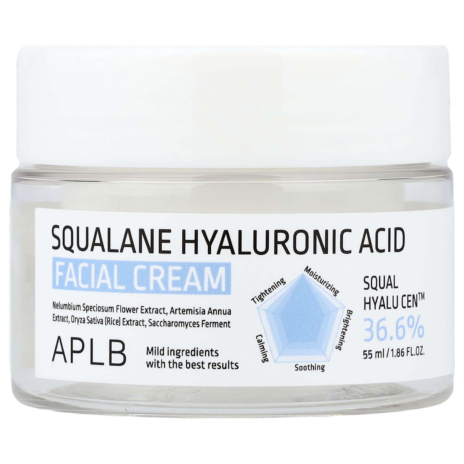 Этот успокаивающий крем для лица с 36,6% Squal Hyalu Cen ™ повышает эластичность и сияние кожи, придавая ей молодой вид.