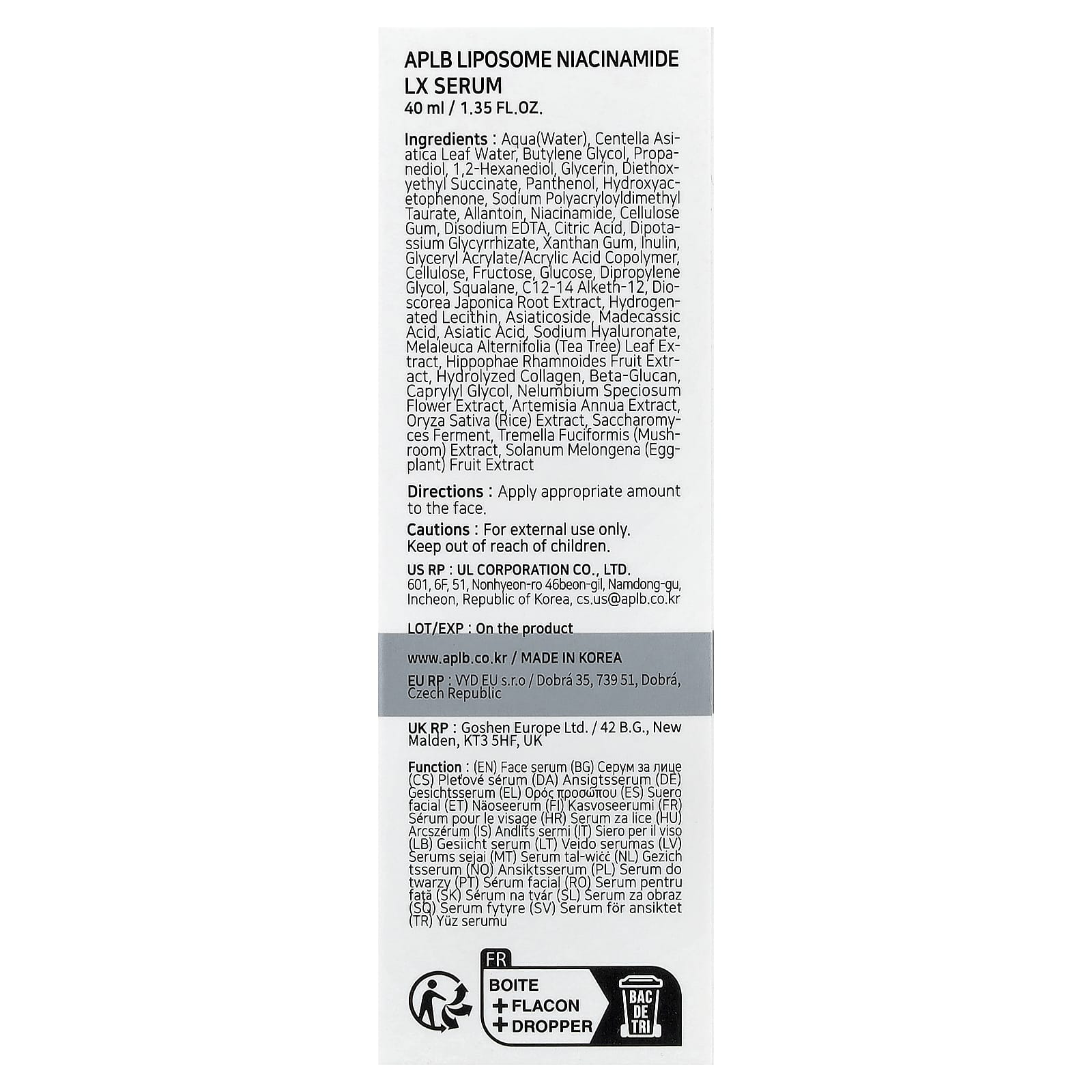 - Липосомы, ниацинамид, вода из листьев центеллы азиатской