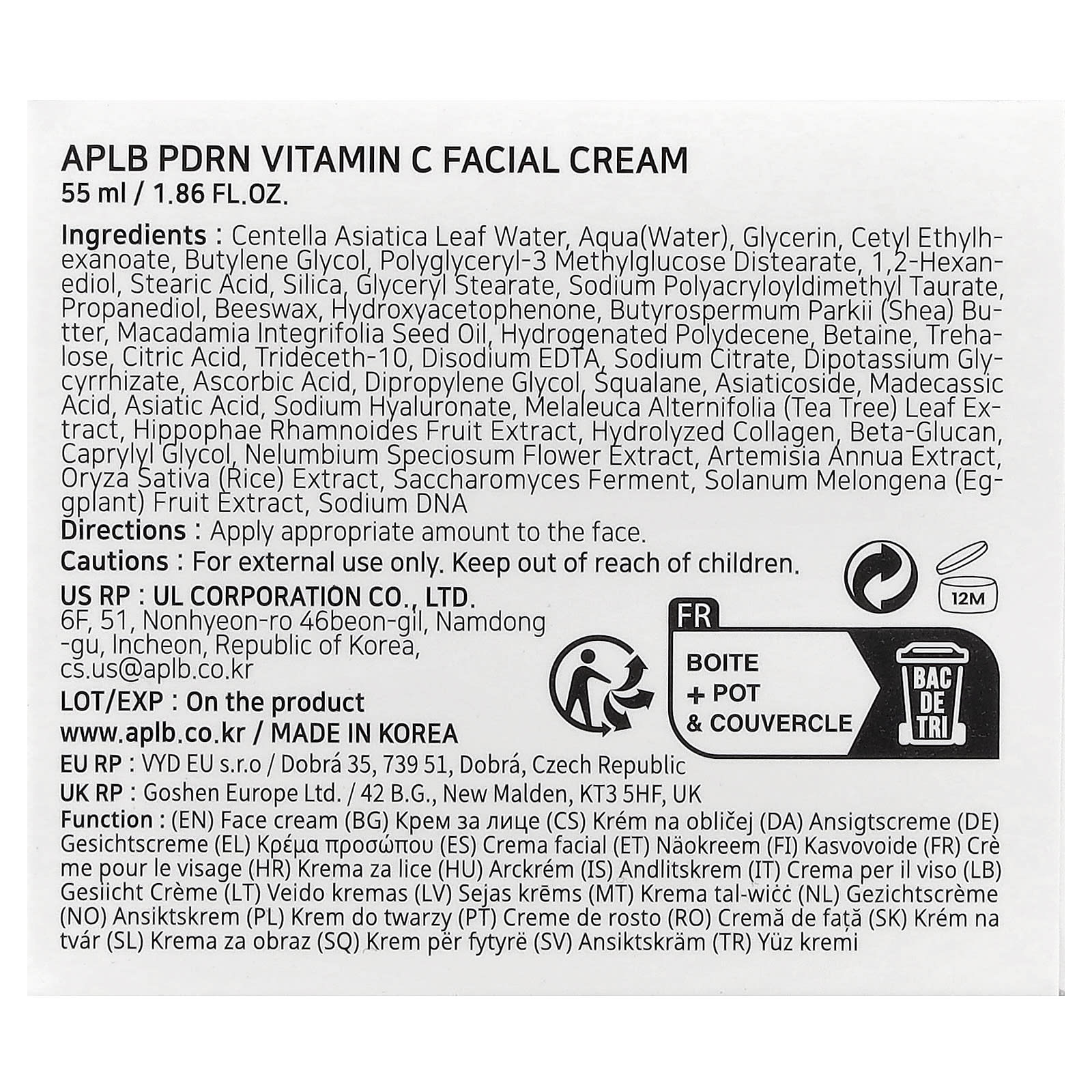 Вода из листьев центеллы азиатской, вода (Aqua), глицерин, цетилэтилгексаноат, бутиленгликоль, полиглицерил-3 метилглюкозы дистеарат, 1,2-гександиол, стеариновая кислота, диоксид кремния, глицерил стеарат, полиакрилодиметил таурат натрия, пропандиол, пчелиный воск, гидроксиацетофенон, масло ши (Butyrospermum parkii), масло макадамии (Macadamia integrifolia), гидрогенизированный полидецен, бетаин, трегалоза, лимонная кислота, тридецет-10, двунатриевая ЭДТК, цитрат натрия, дикалия глицирризат, аскорбиновая кислота, дипропиленгликоль, сквалан, азиатикозид, мадекассовая кислота, азиатиковая кислота, гиалуронат натрия, экстракт листьев чайного дерева (Melaleuca alternifolia), экстракт плодов облепихи крушиновидной (Hippophae rhamnoides), гидролизованный коллаген, бета-глюкан, каприлилгликоль, экстракт цветков лотоса (Nelumbium speciosum), экстракт полыни однолетней (Artemisia annua), экстракт риса (Oryza sativa), продукт ферментации сахаромицетов, экстракт плодов баклажана (Solanum melongena), днк натрия.