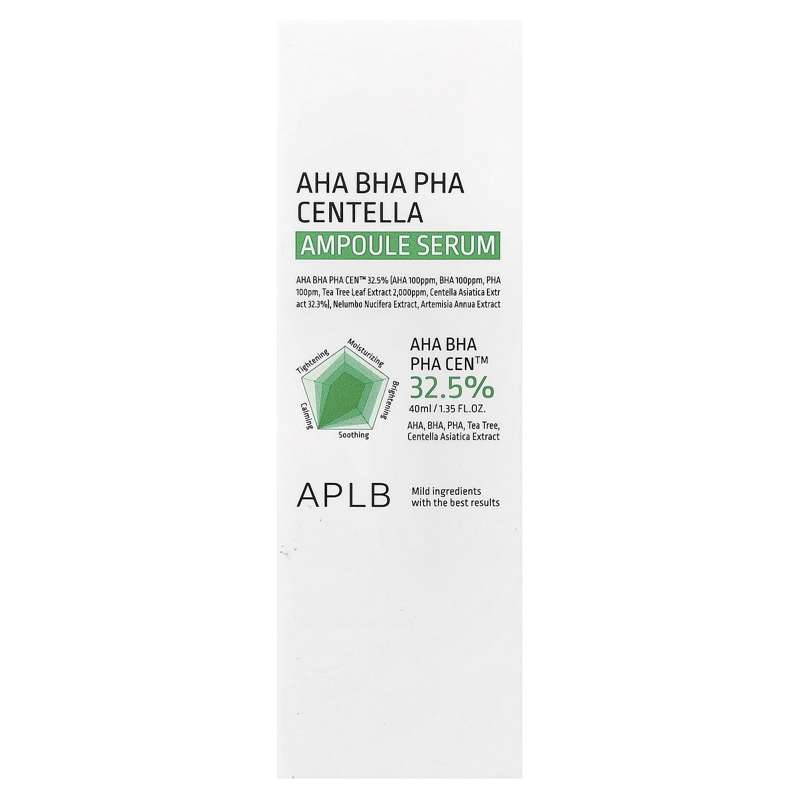 АГК, БГК и ПГК Cen™ 32,5% (АГК 100 част./млн, БГК 100 част./млн, ПГК 100 част./млн, экстракт листьев чайного дерева, 2000 част./млн, экстракт готу колы (Centella asiatica) 32,3%) в сочетании с комплексом Centella 3x Complex™ и запатентованными ингредиентами делают эту сыворотку премиального качества обеспечивает интенсивное питание и глубокое увлажнение кожи, делая ее сияющей и увлажненной.