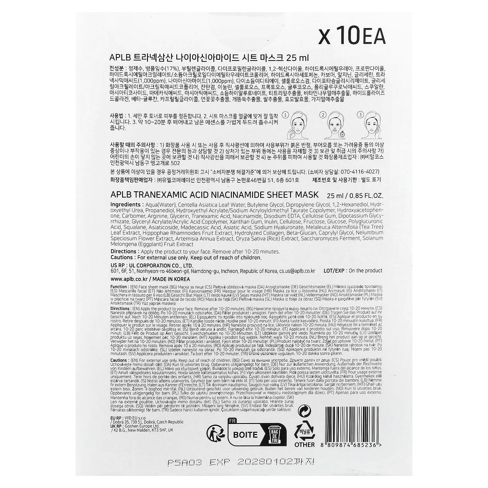- Транексамовая кислота, ниацинамид, вода из листьев центеллы азиатской