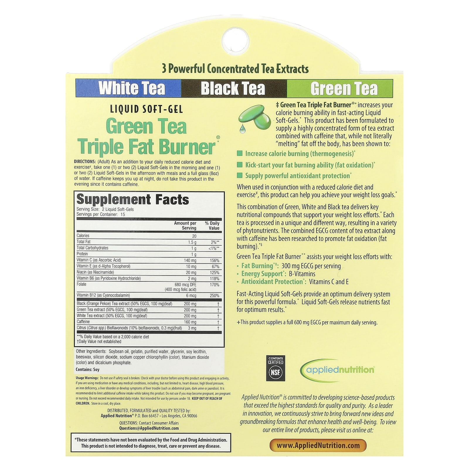 ‡ Зеленый чай Triple Fat Burner® увеличивает способность сжигать калории в жидких капсулах быстрого действия. Этот продукт был разработан для обеспечения высококонцентрированной формы экстракта чая в сочетании с кофеином, который, хотя и не «тает» жир в организме в буквальном смысле, обладает следующими свойствами: